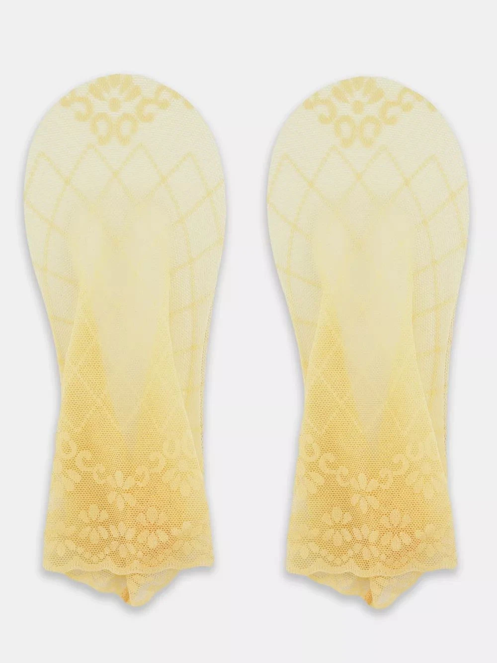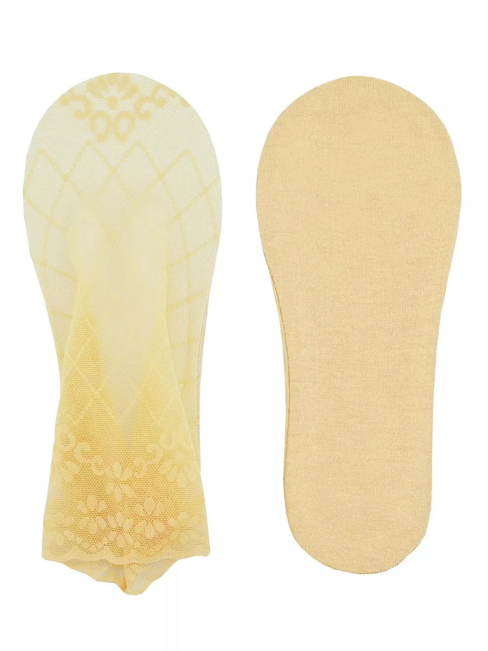 Dámské ponožky 034 W 02 NOVITI - béžová barva - z prolamované síťoviny s ozdobným vzorem - bavlněná podrážka - prodyšné a pohodlné - ozdobené na špičce a manžetě - ideální pro baleríny, mokasíny a letní boty