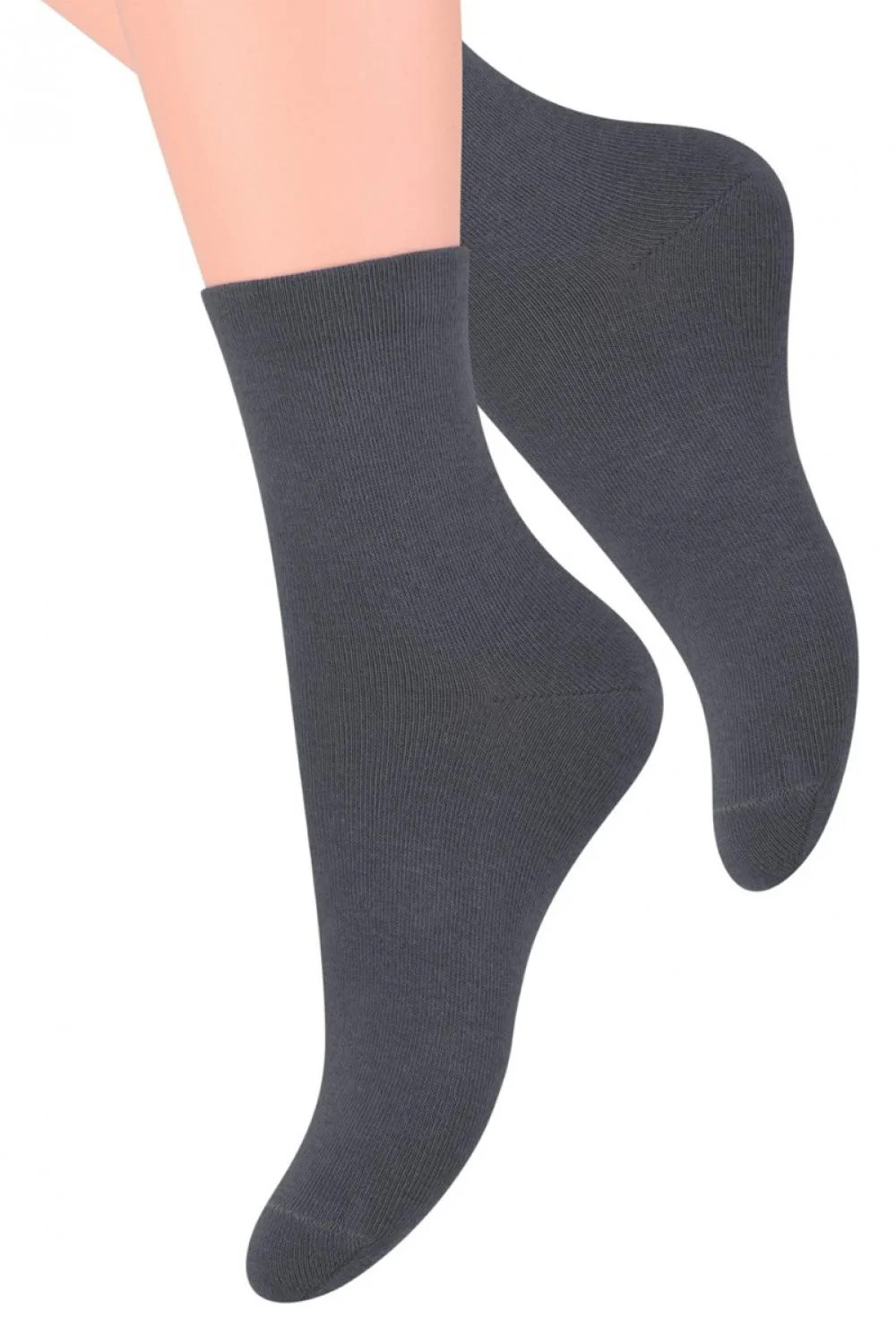 Dámské ponožky 037 Steven - tmavě šedé barvy - z kvalitní česané bavlny - plochý šev - model je ideální pro každodenní nošení