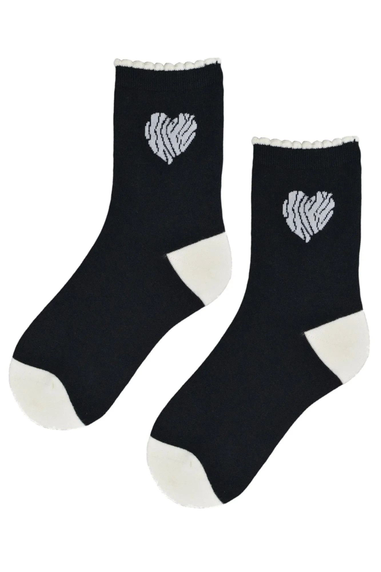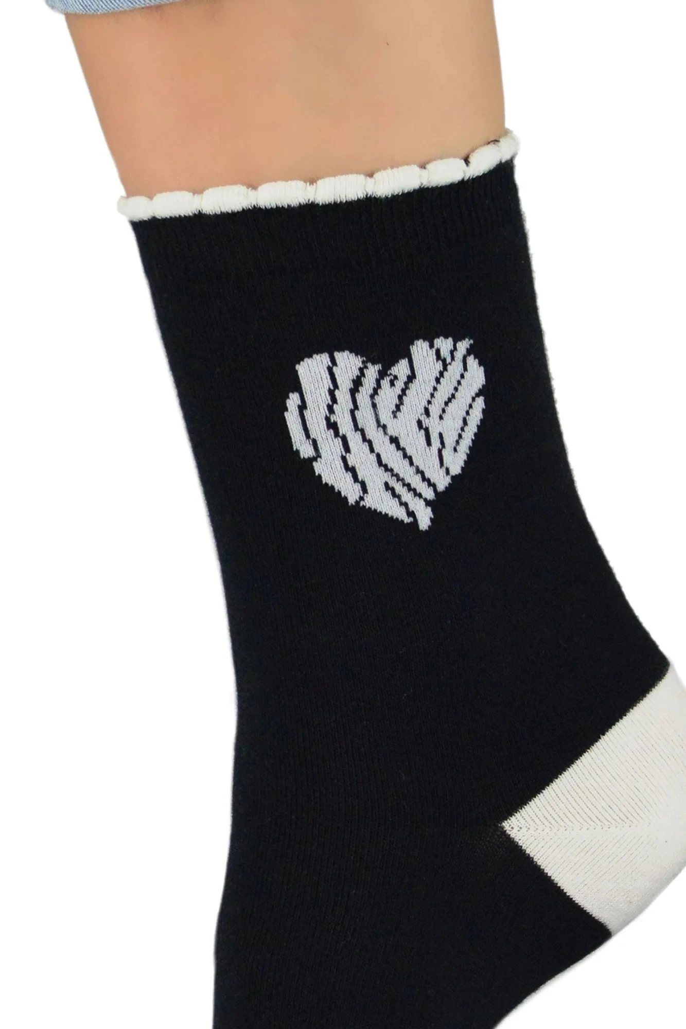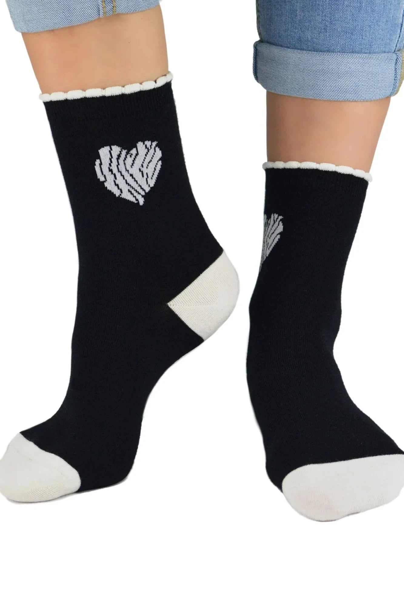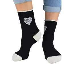 Dámské ponožky 048 G01 NOVITI - černá barva - z velmi kvalitní bavlny - ozdobené srdcem - nestahující