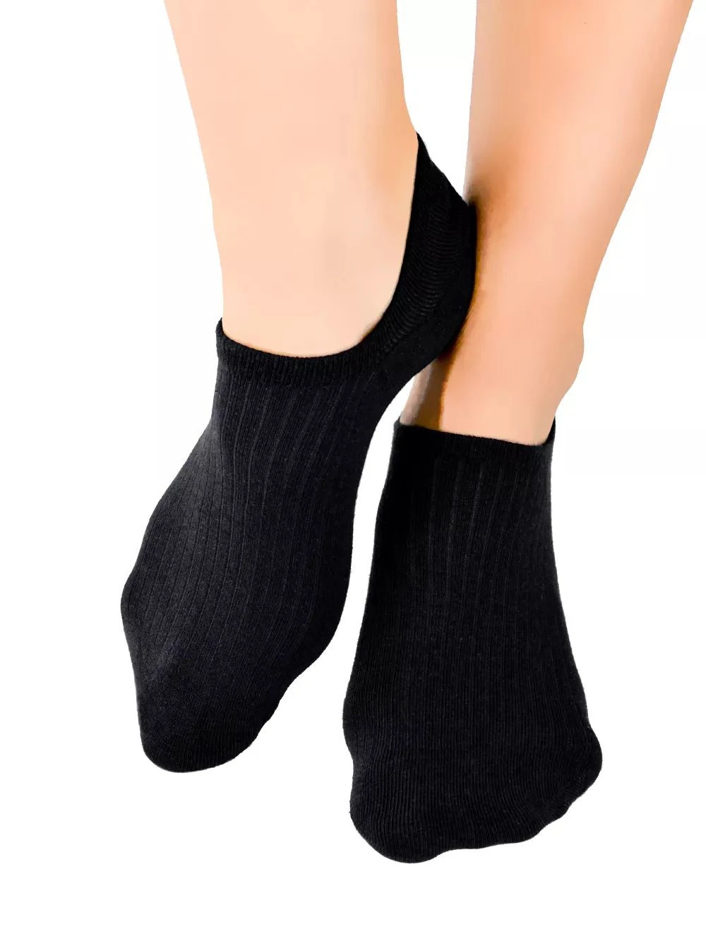 Dámské ponožky 049 M02 NOVITI - černá barva - z vysoce jakostní bavlny - hladká podrážka - žebrovaný svršek - silikónový pásek na patě zabraňuje sklouzávání - pro každodenní nošení
