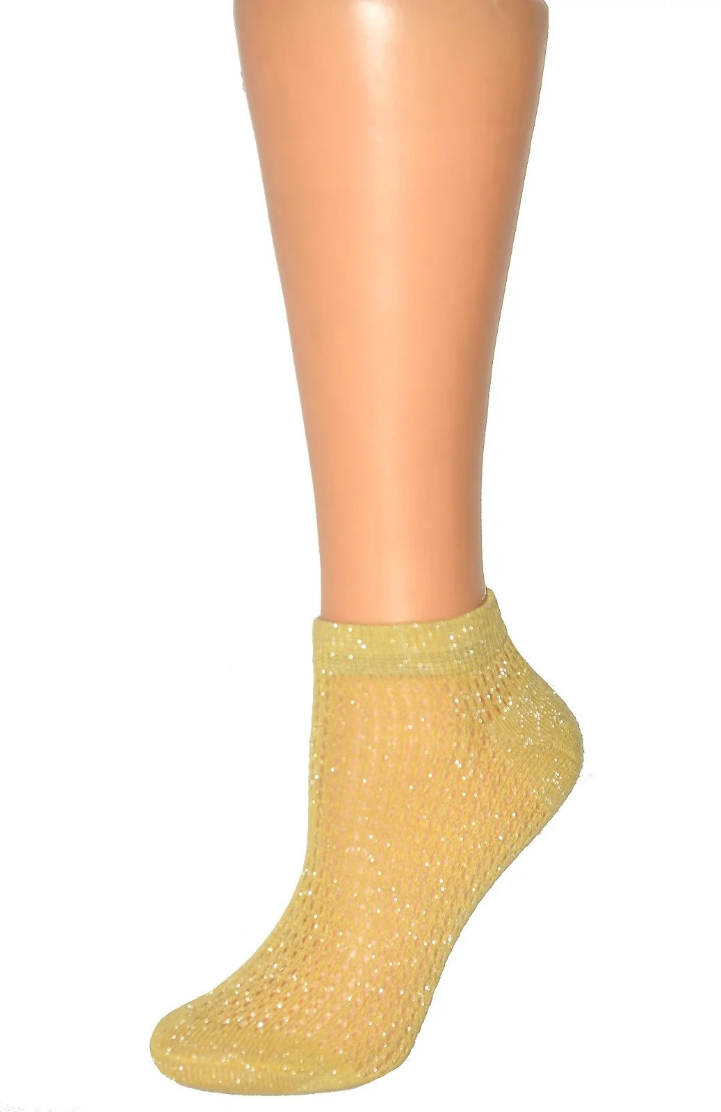 Ponožky jsou vyrobené z měkké tkaniny s lesklou lurexovou přízí.