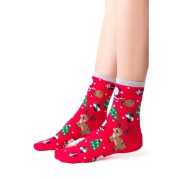 Dámské ponožky 136 090 Steven - červená barva - z vysoce jakostní bavlny - froté ponožky s protiskluzovou podešví - měkké, teplé, pohodlné a ideální pro chladné dny - vánoční kolekce
