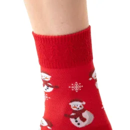 Dámské ponožky 136 107 Steven - červená barva - z vysoce jakostní bavlny - froté ponožky s protiskluzovou podešví - měkké, teplé, pohodlné a ideální pro chladné dny - vánoční kolekce