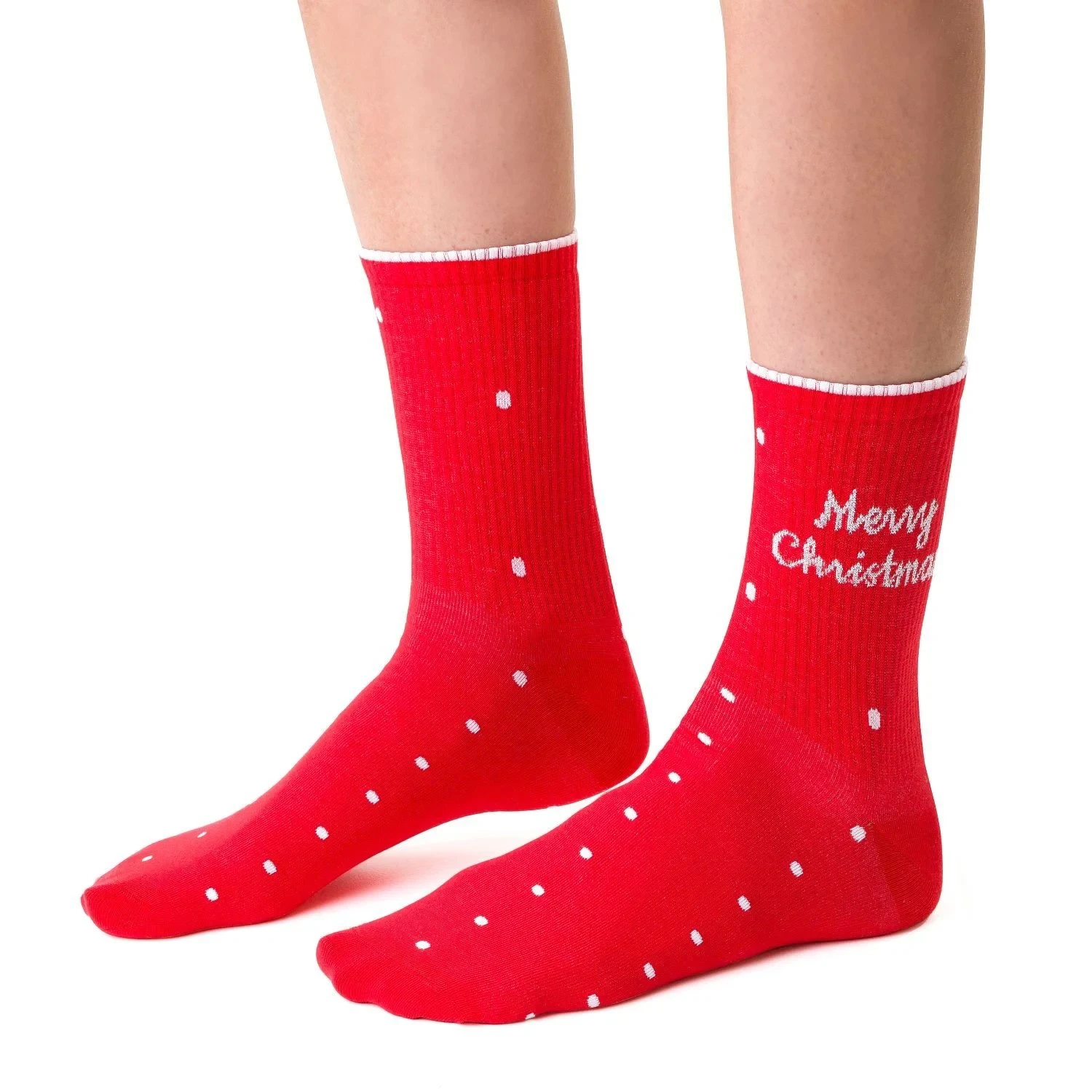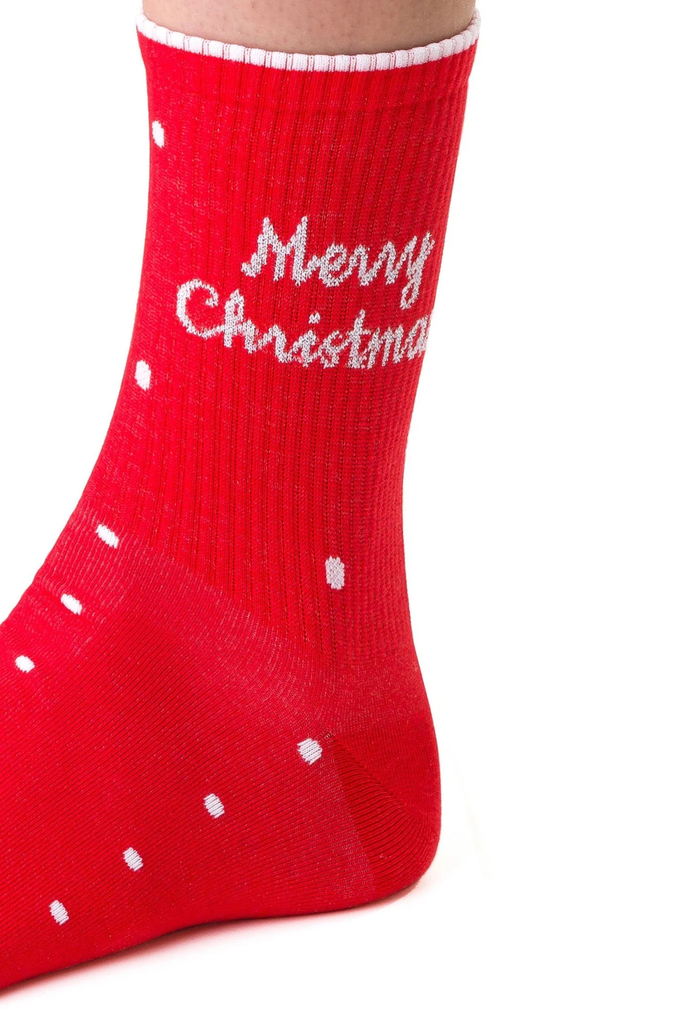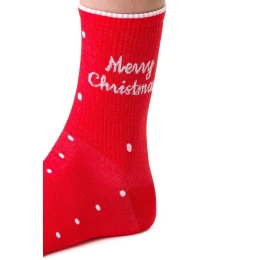 Dámské ponožky 136 114 Steven - červená barva - z vysoce jakostní bavlny - froté ponožky s protiskluzovou podešví - měkké, teplé, pohodlné a ideální pro chladné dny - vánoční kolekce
