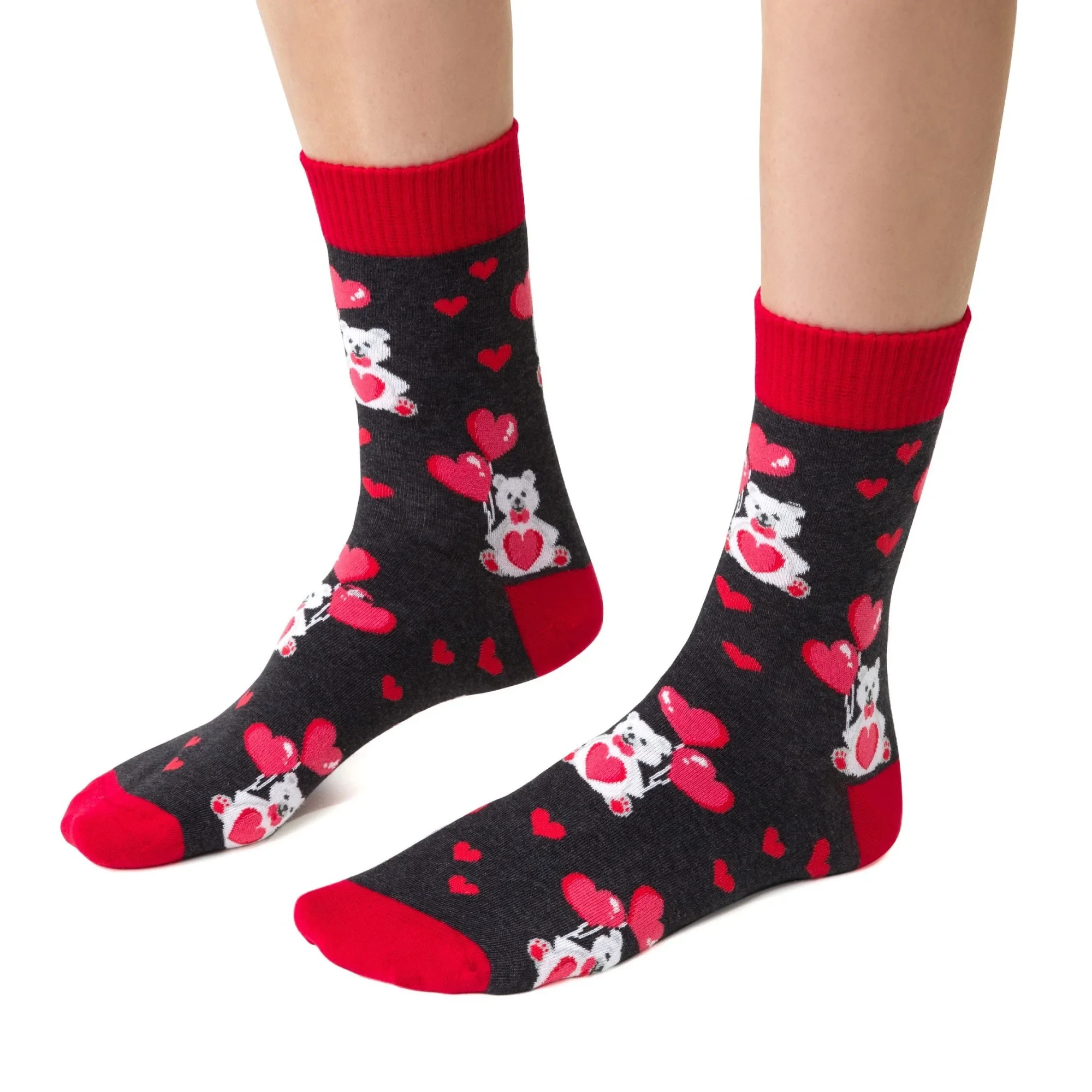 Dámské ponožky 136 123 Steven - grafitová barva - z vysoce jakostní bavlny - froté ponožky s protiskluzovou podešví - měkké, teplé, pohodlné a ideální pro chladné dny - valentýnská kolekce