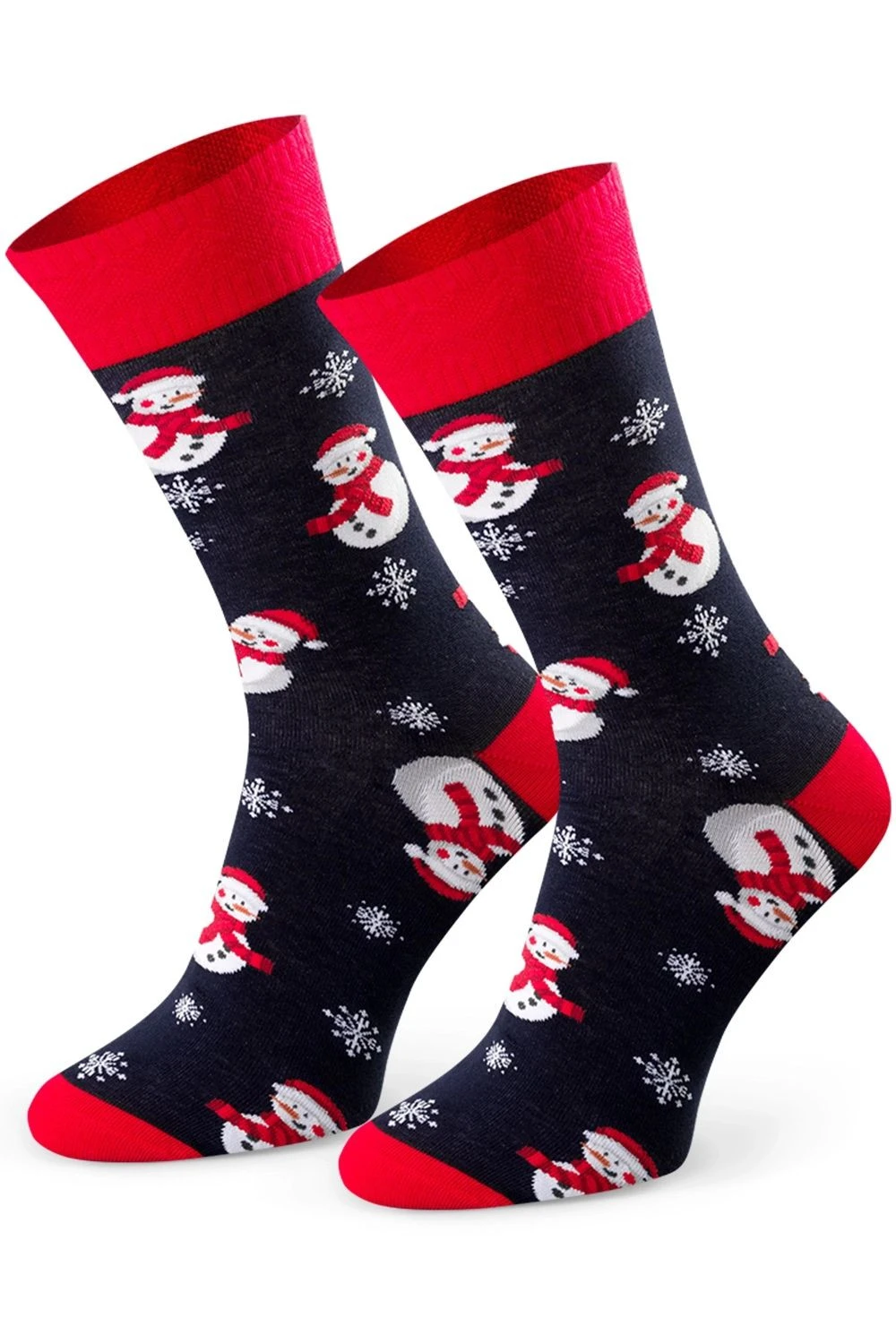 Dámské ponožky 136 142 Steven - tmavě modrá barva - z vysoce jakostní bavlny - s protiskluzovou podešví - měkké, teplé, pohodlné a ideální pro chladné dny - vánoční kolekce