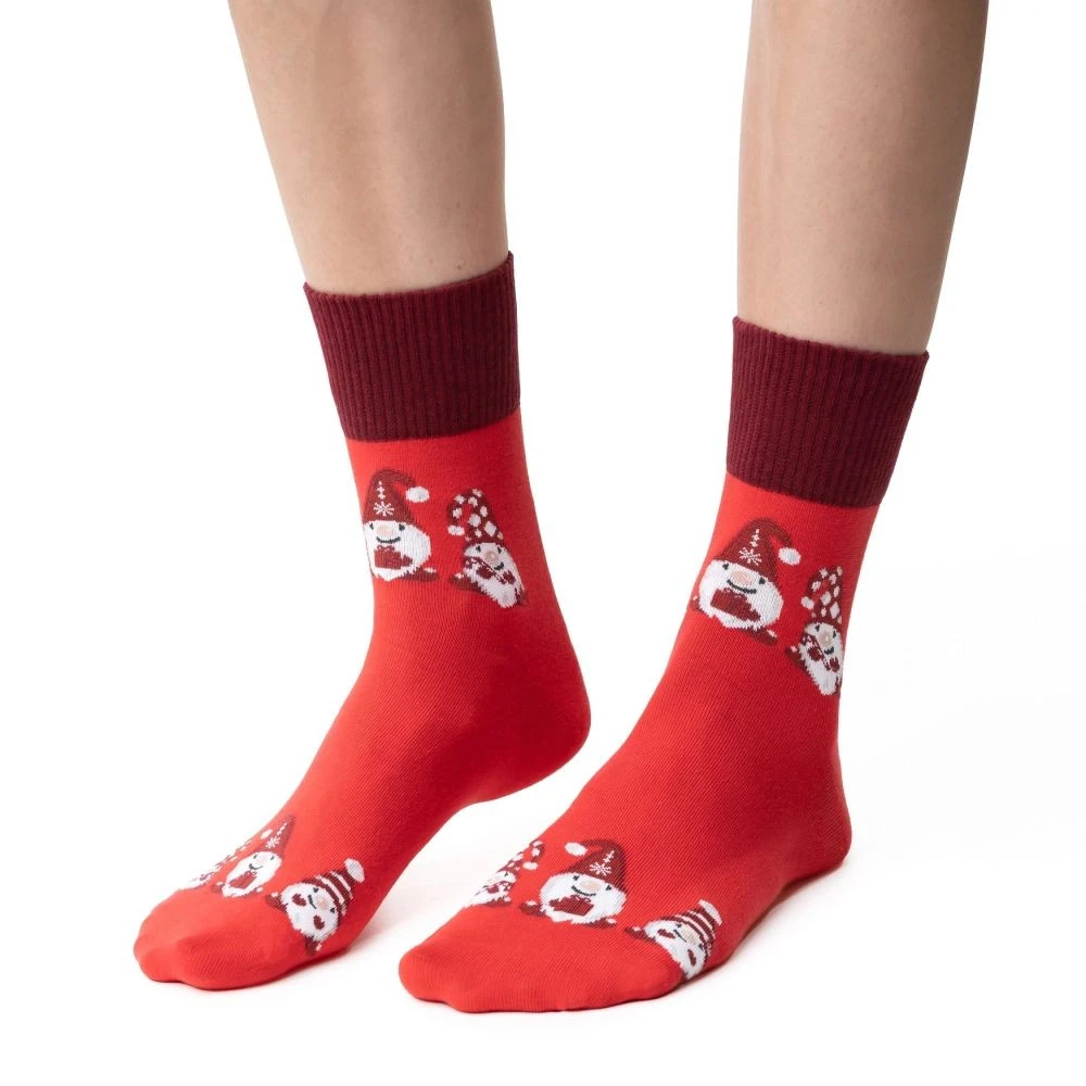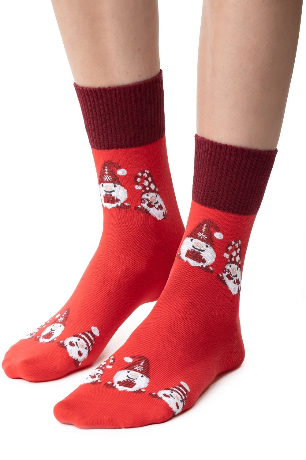 Dámské ponožky 136 148 Steven - červená barva - z vysoce jakostní bavlny - s protiskluzovou podešví - měkké, teplé, pohodlné a ideální pro chladné dny - vánoční kolekce