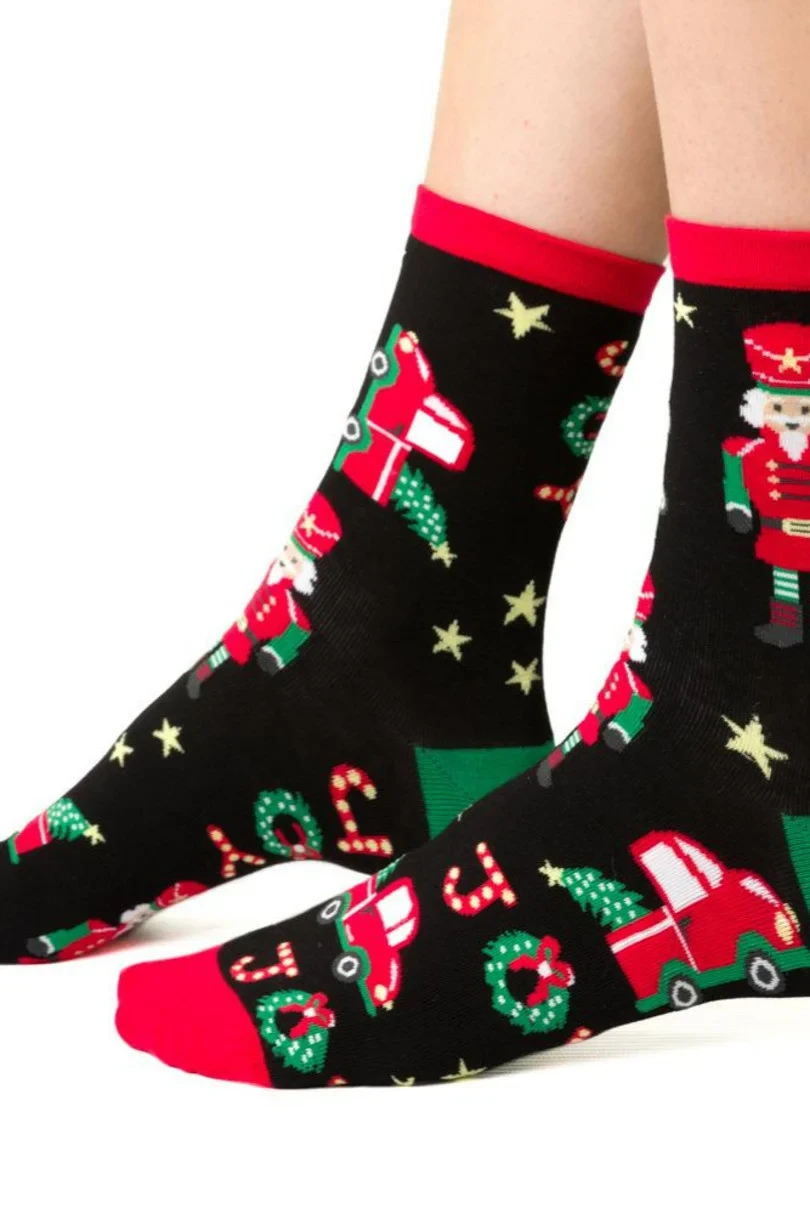 Skarpety damskie bawełniane z okazjonalnymi motywami. Płaski szew, nieuciskający ściągacz zapewniają wygodę i komfort użytkowania.
