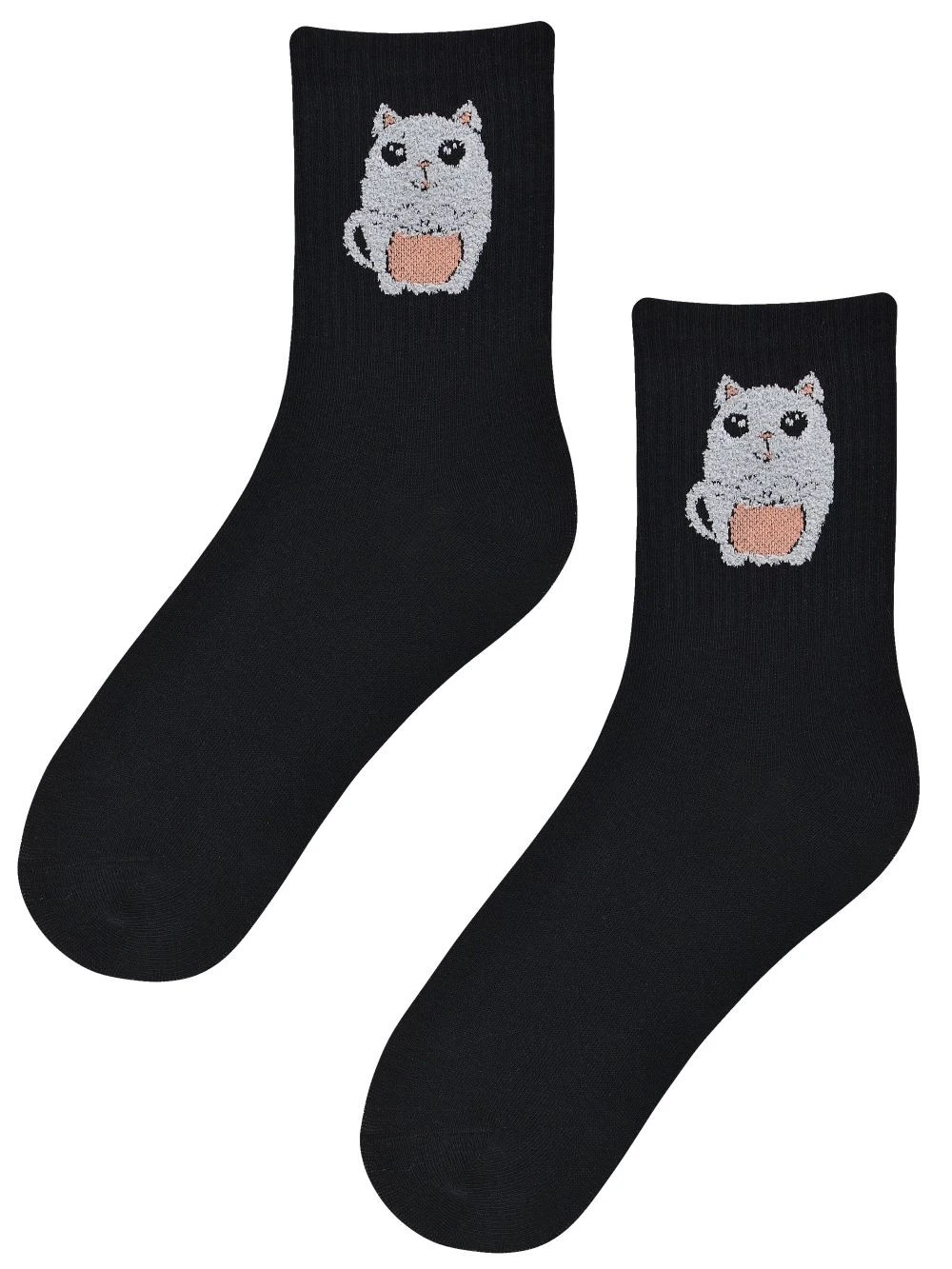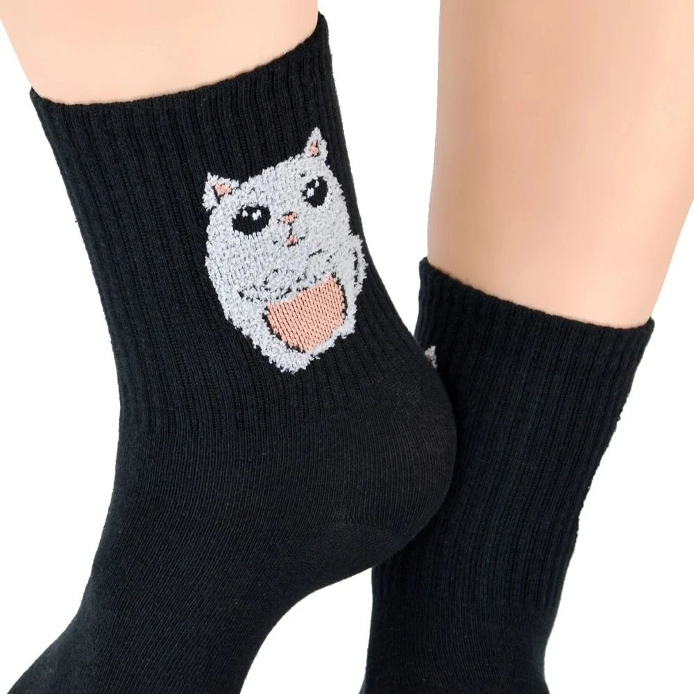 Dámské ponožky 151 W 01 NOVITI - černá barva - z měkké bavlny - zdobené obrázkem - netlačí - velmi pohodlné