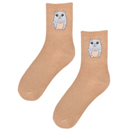 Dámské ponožky 151 W 02 NOVITI - hnědá barva - z měkké bavlny - zdobené obrázkem - netlačí - velmi pohodlné