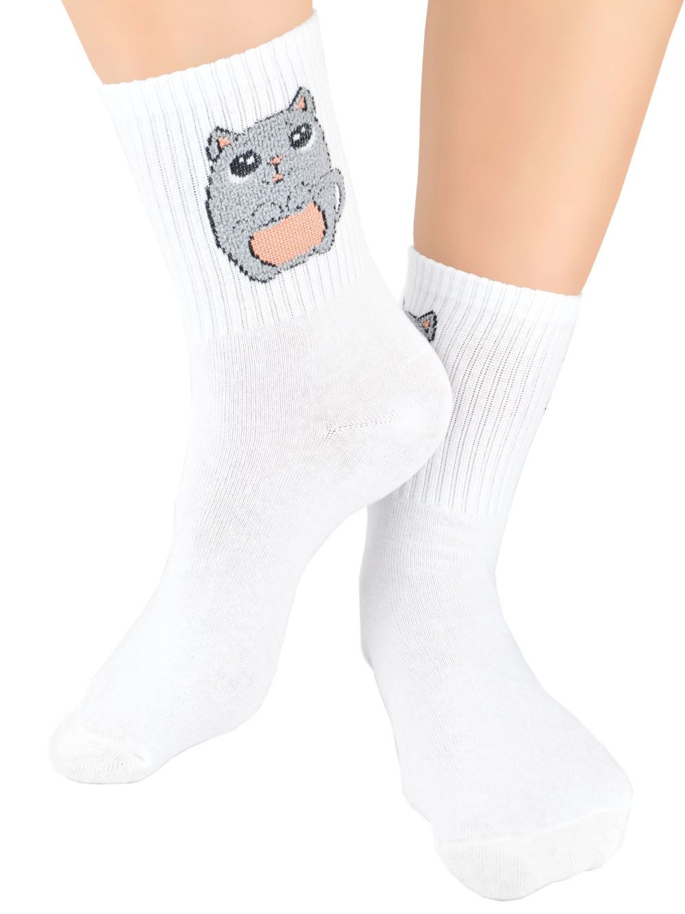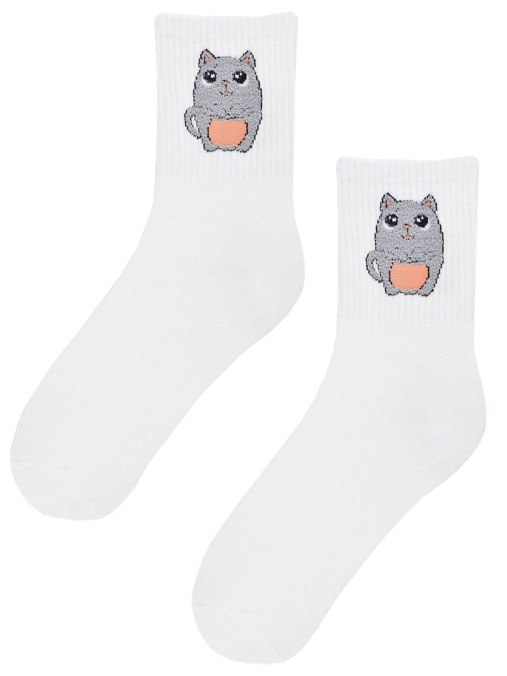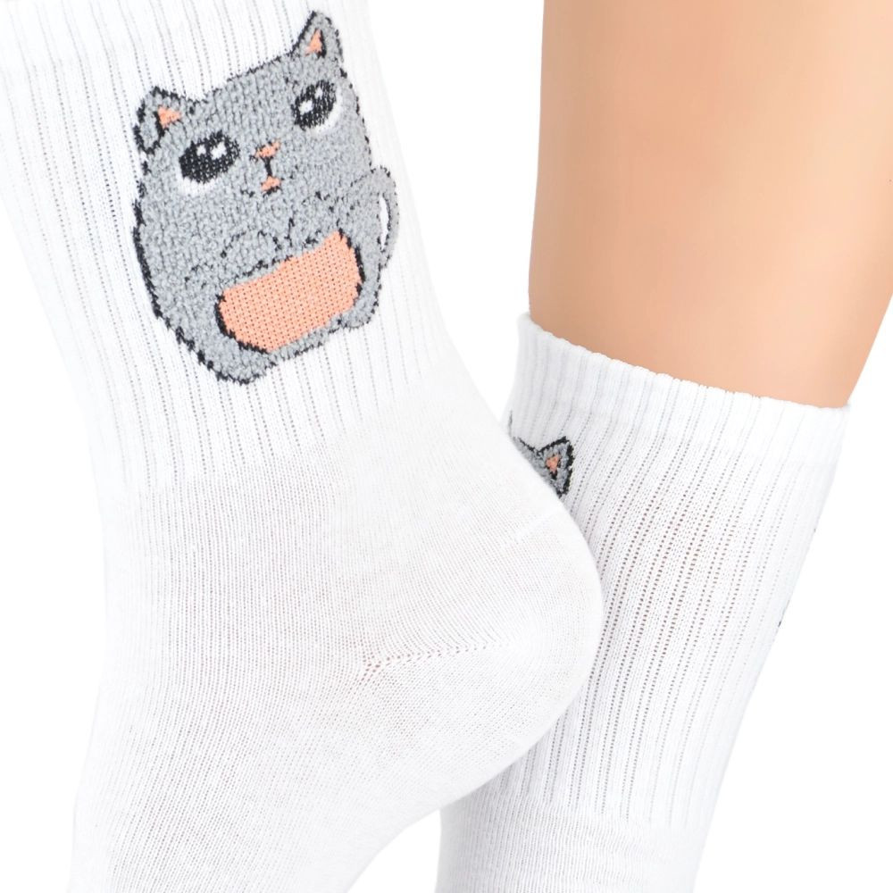 Dámské ponožky 151 W 03 NOVITI - bílá barva - z měkké bavlny - zdobené obrázkem - netlačí - velmi pohodlné