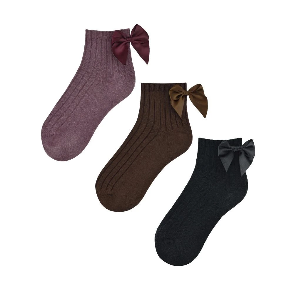 Dámské ponožky 3 pack 145 G01 NOVITI - z vysoce jakostní bavlny - 3ks - zdobené mašličkou - výhodné balení tří barev