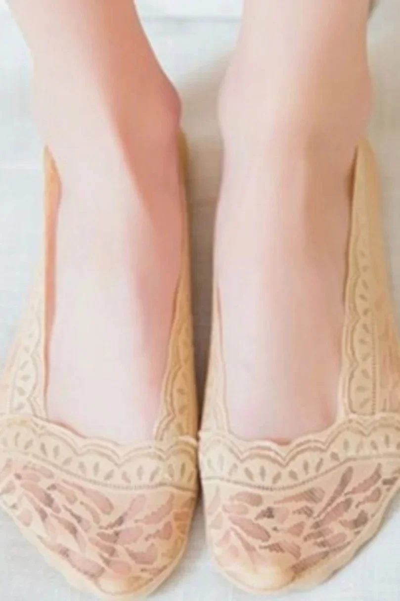 Ponožky jsou střižené laserem, jsou lehce vykrojené a jsou ideální do balerínek. Kolem chodidla je silikon.