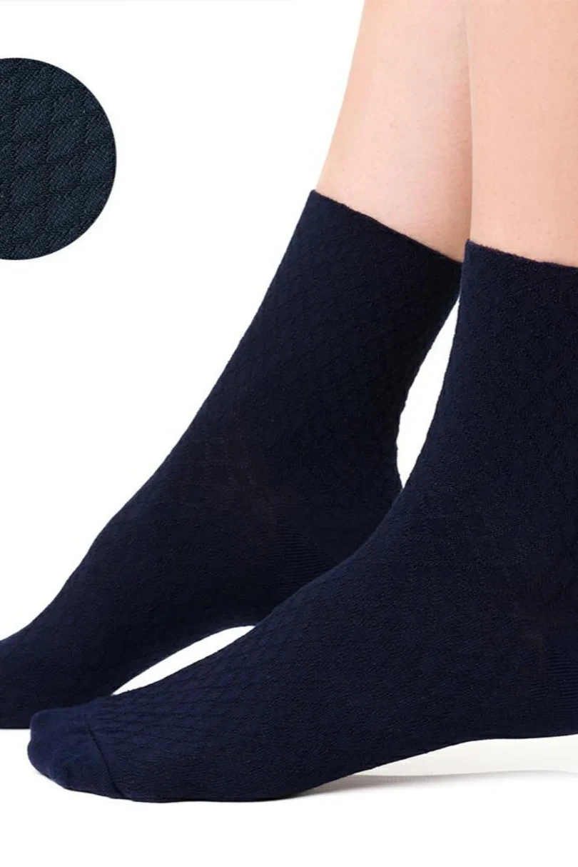 Tenké ponožky z bambusového vlákna s jemnou kosočtverečnou strukturou.