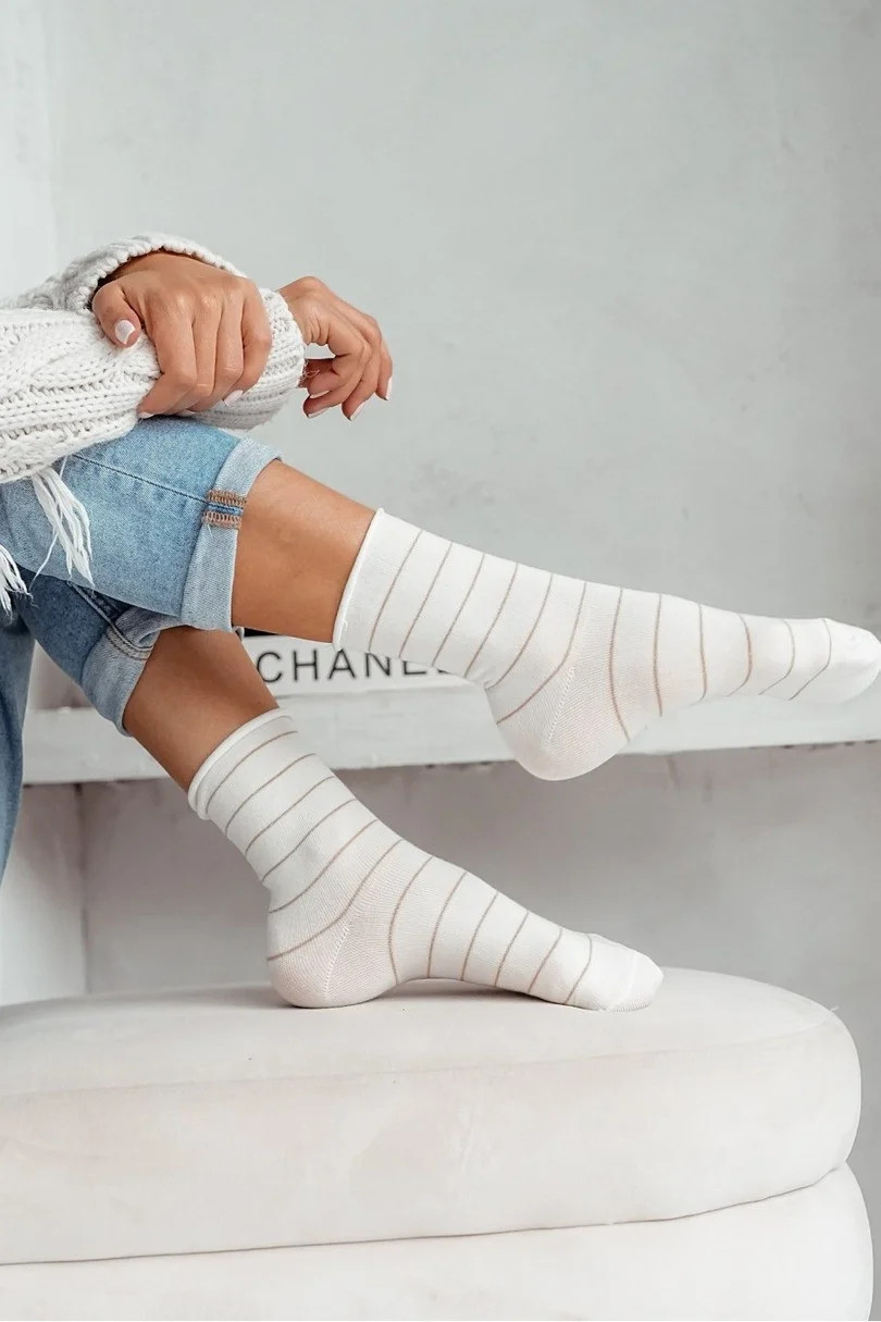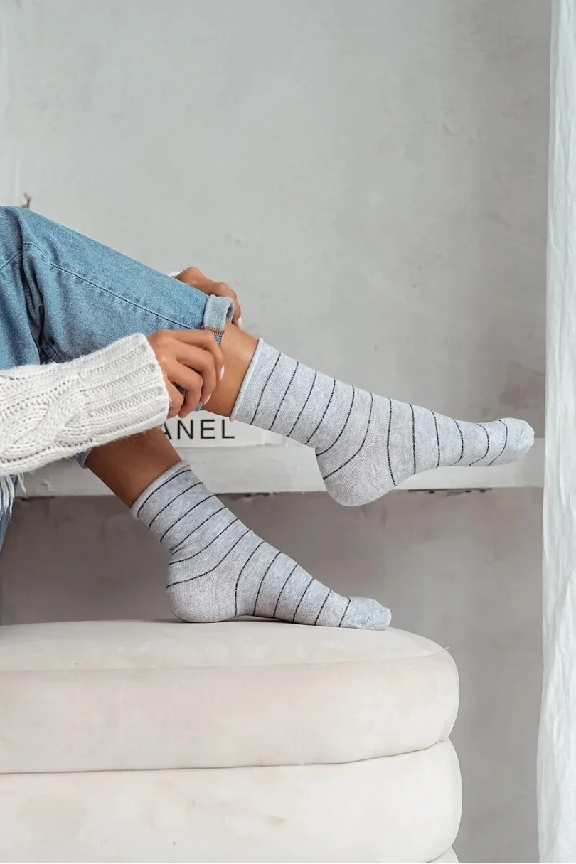 Dámské bavlněné ponožky s jemnými lurexovými proužky.