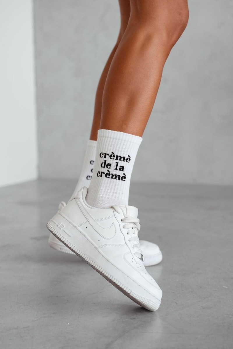 Dámské ponožky bílé s černým nápisem Crèmè De La Crèmè