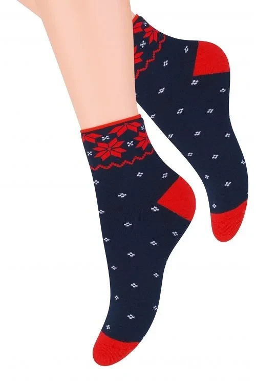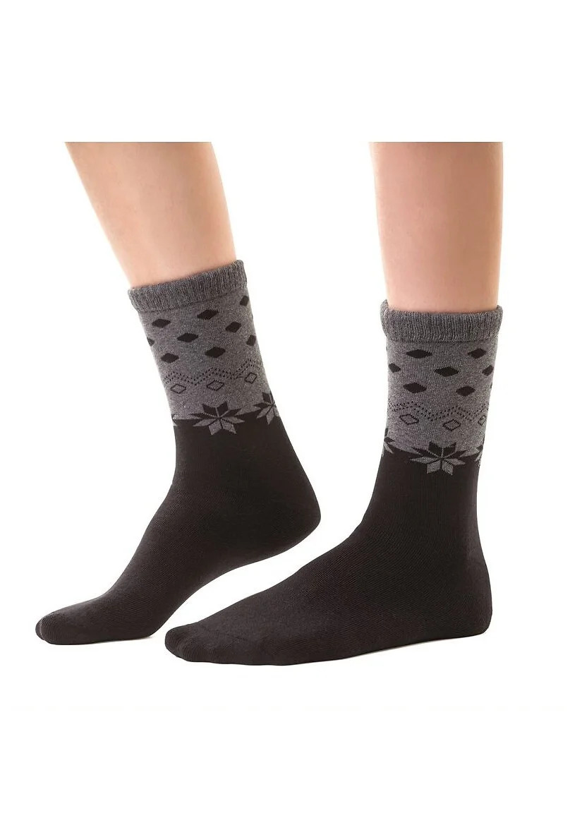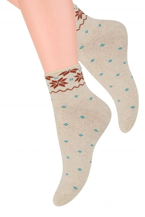 Teplé dámské ponožky na zimu, které jsou vyrobené z bavlny s přídavkem pružných přízí.