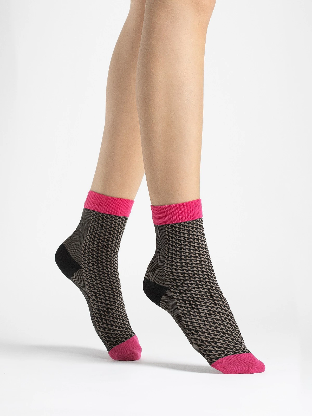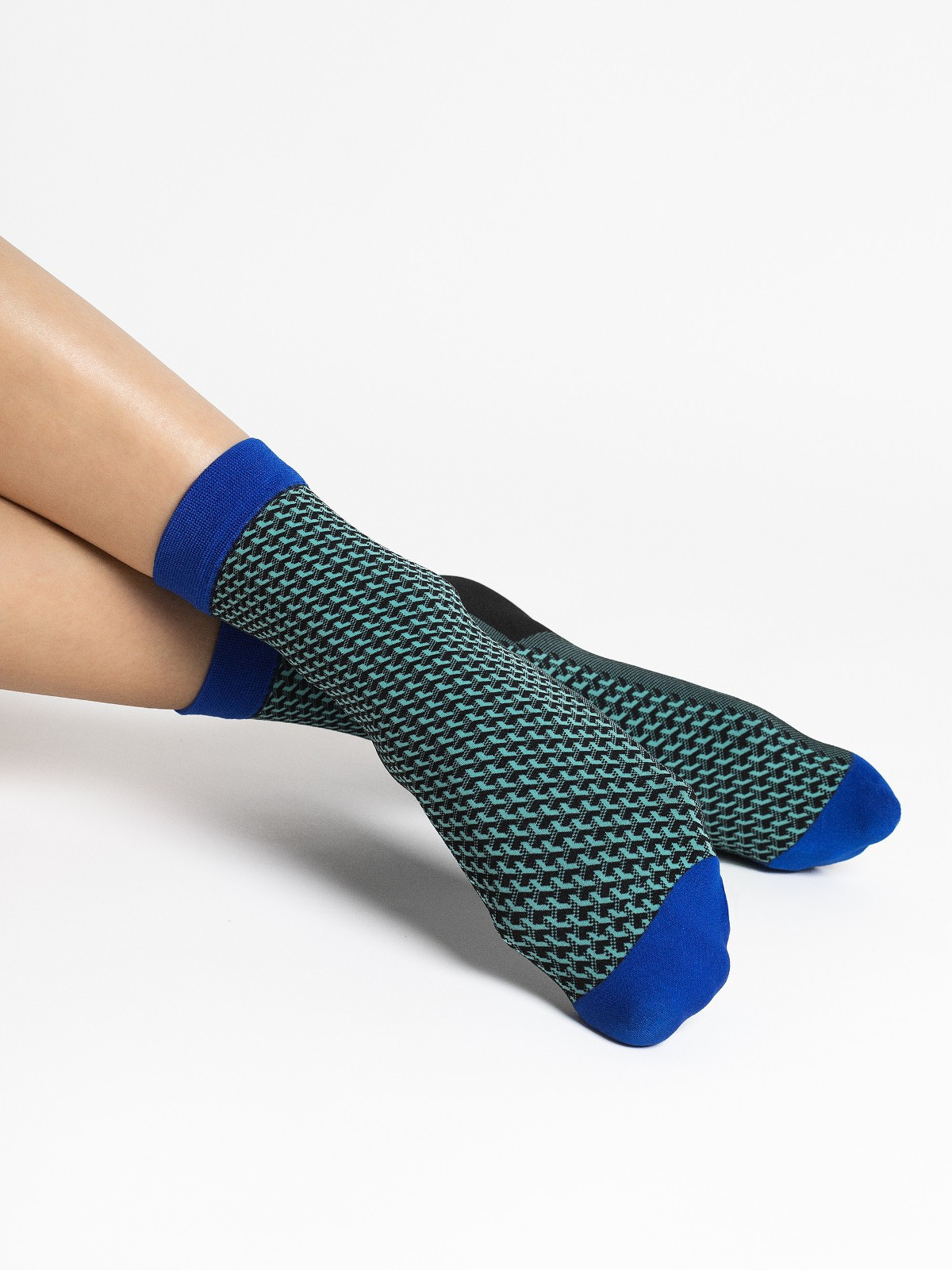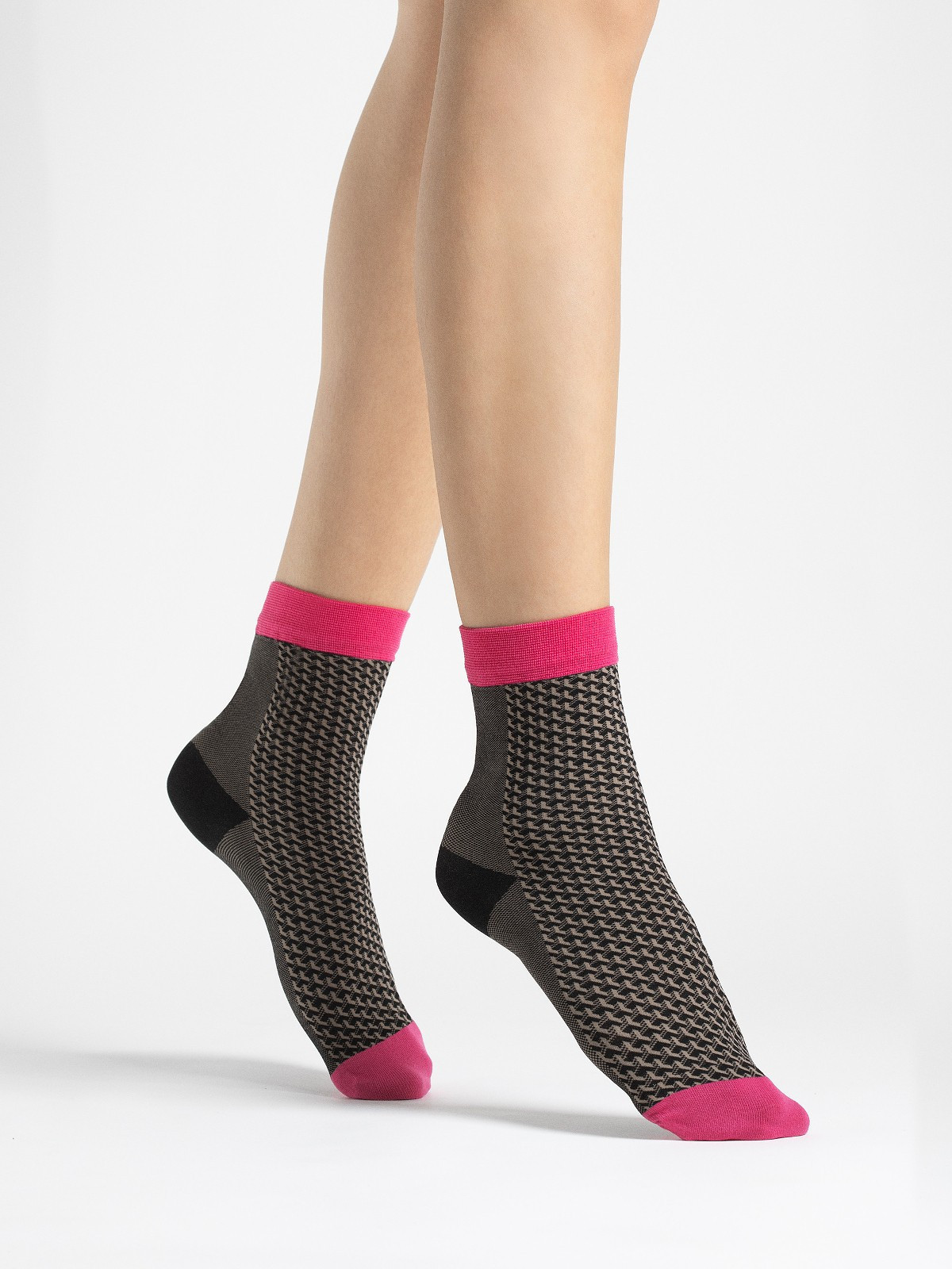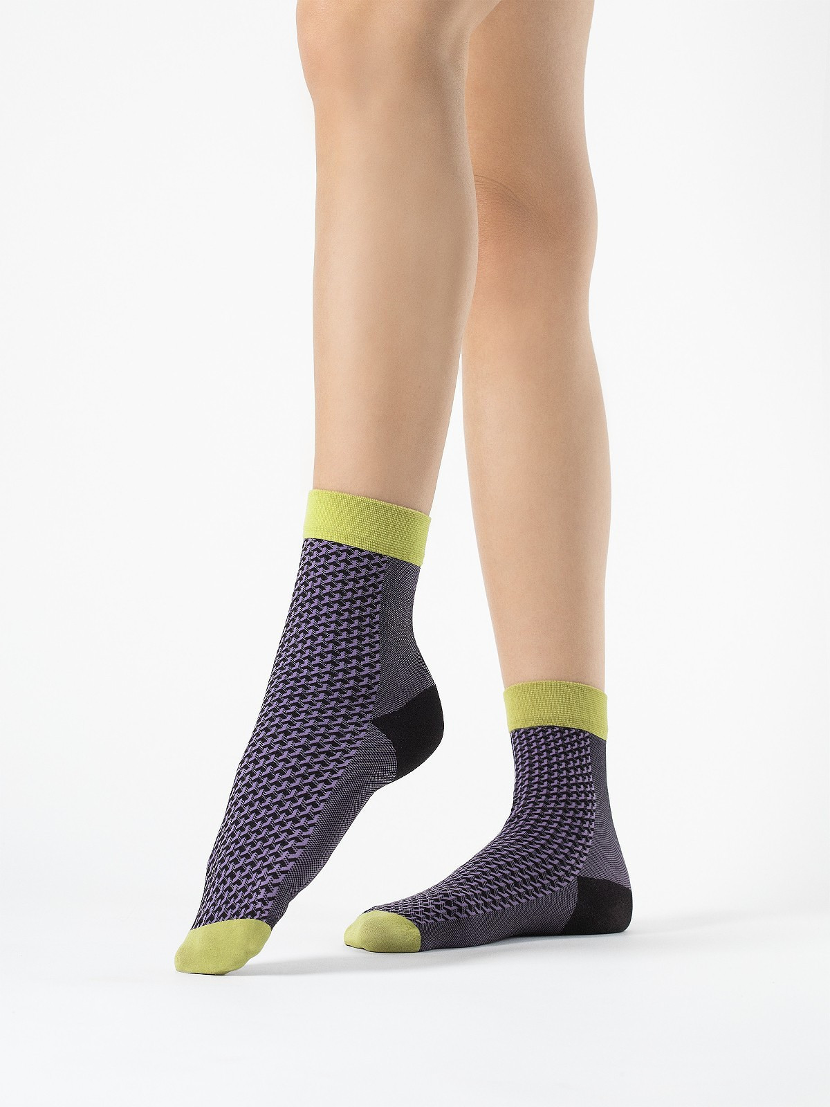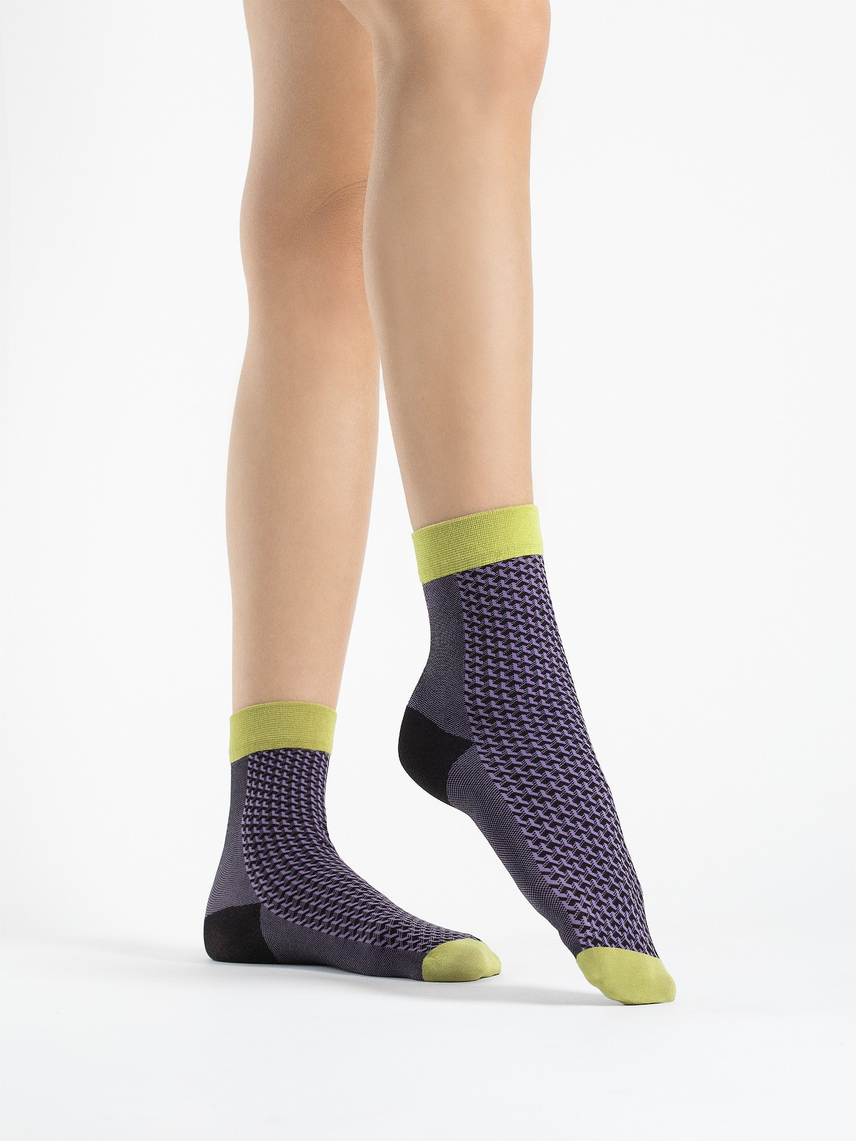 Ponožky jsou ozdobené vzorem "romby". Špičky, paty a lem jsou jednobarevné.