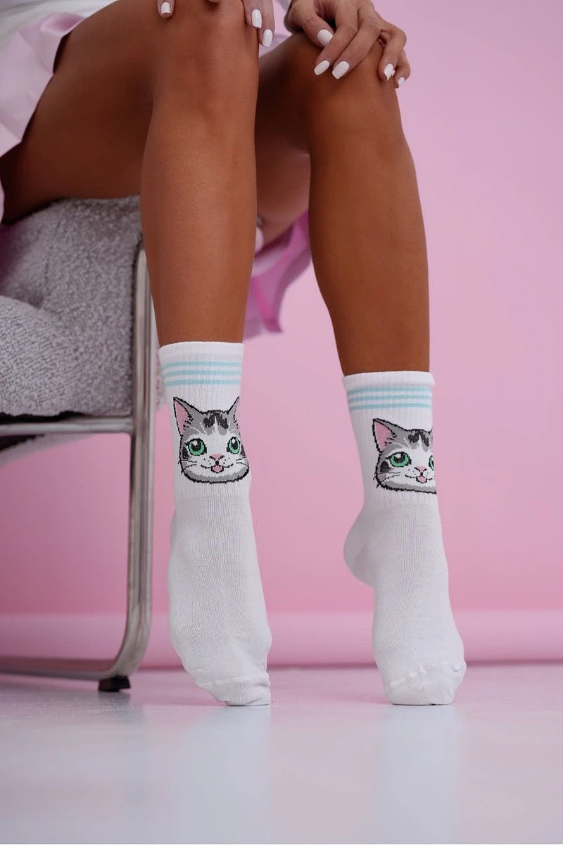 Dámské ponožky kočky s modrými pruhy