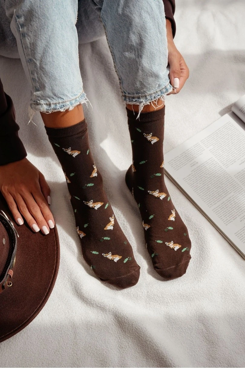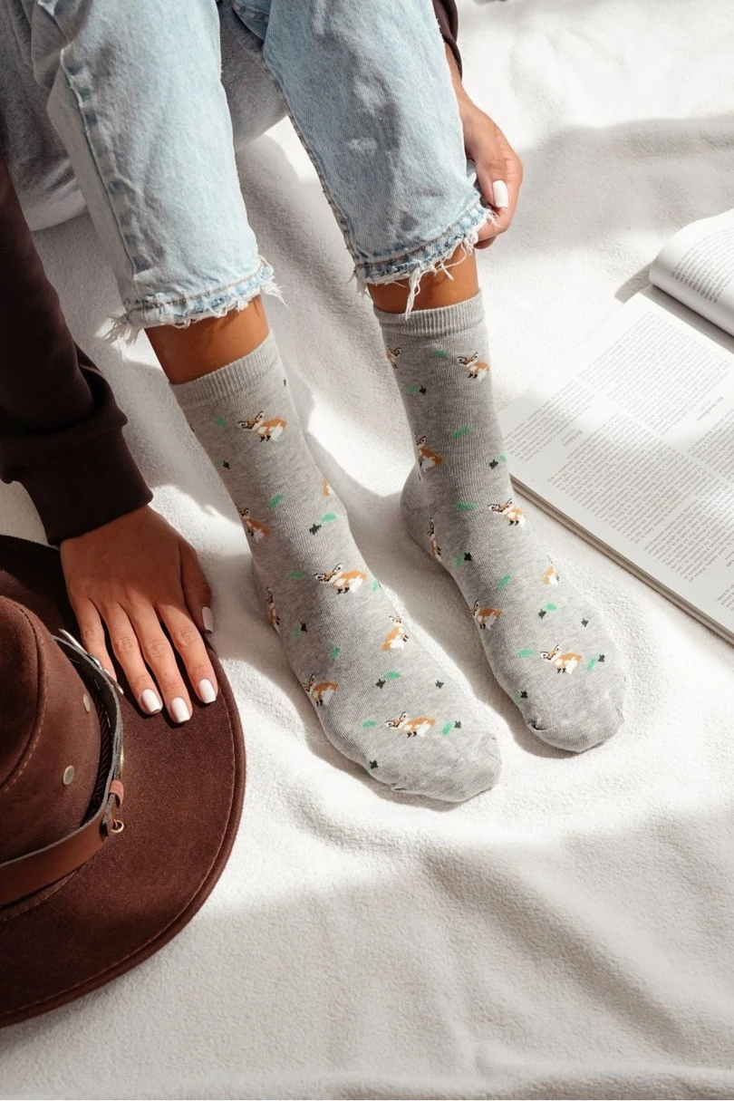 Ożyw swoją codzienną stylizację dzięki damskim skarpetkom „Lisy i liście” 0200.182 od cenionej marki Milena. Te urocze skarpetki łączą w sobie wygodę, jakość i niepowtarzalny design inspirowany naturą. Wzór z rudymi lisami i jesiennymi liśćmi przyciąga wzrok i dodaje charakteru, sprawiając, że nawet najprostszy outfit nabiera wyjątkowego stylu.