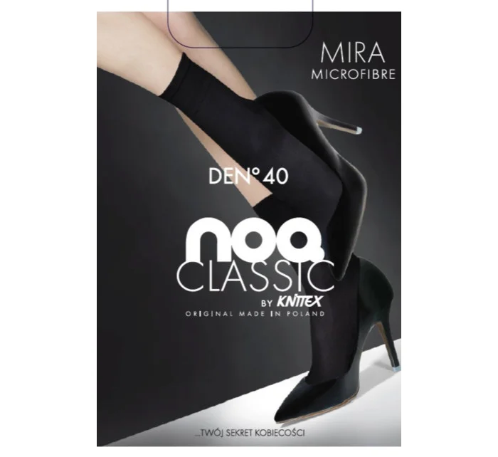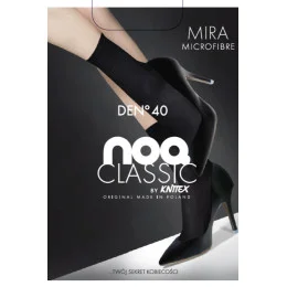 Klasyczne, gładkie skarpetki damskie wykonane z mikrofibry o grubości 40 den, wykończone bezuciskowymi ściągaczami. Bardzo wytrzymałe ze względu na zastosowanie wysokiej jakości włókien. Skarpetki są niezbędnikiem w szafie każdej eleganckiej kobiety, polecane w okresie jesienno- zimowym.