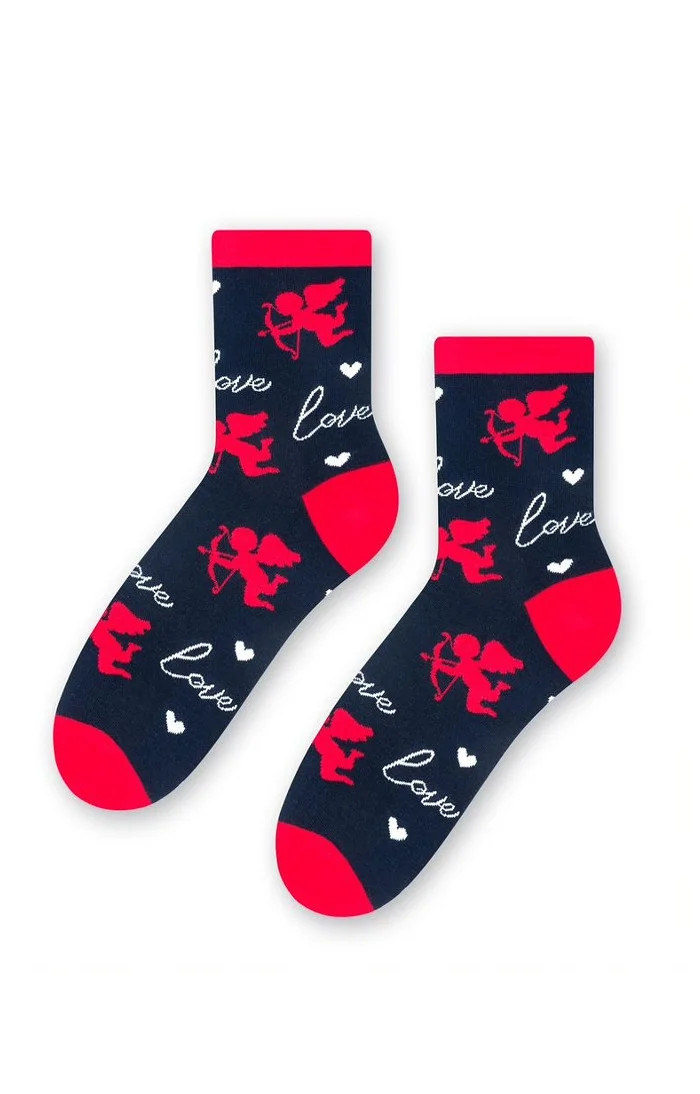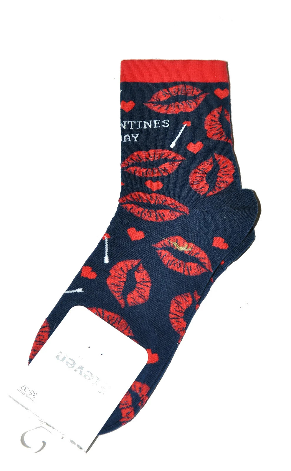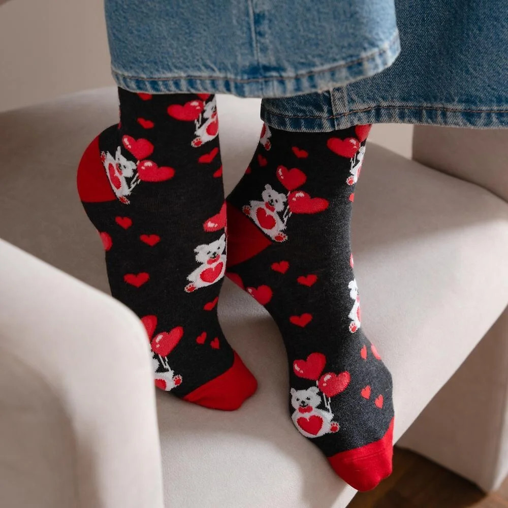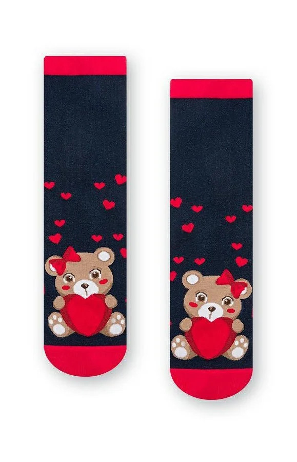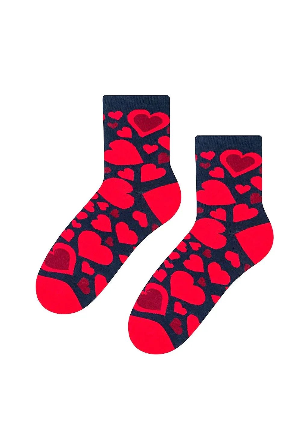 Ponožky jsou ozdobené valentýnskými motivy. Ploché švy a lem, který netlačí, jsou zárukou pohodlí a komfortu při nošení.