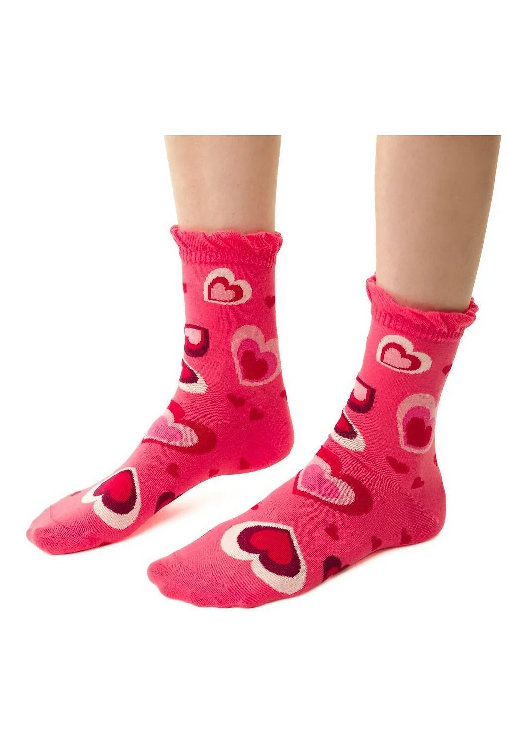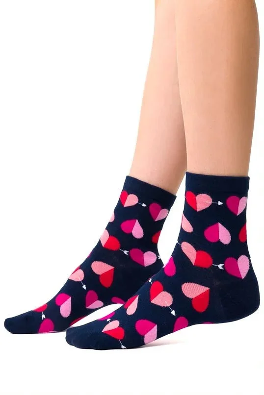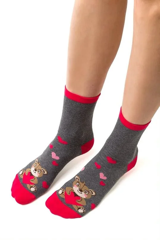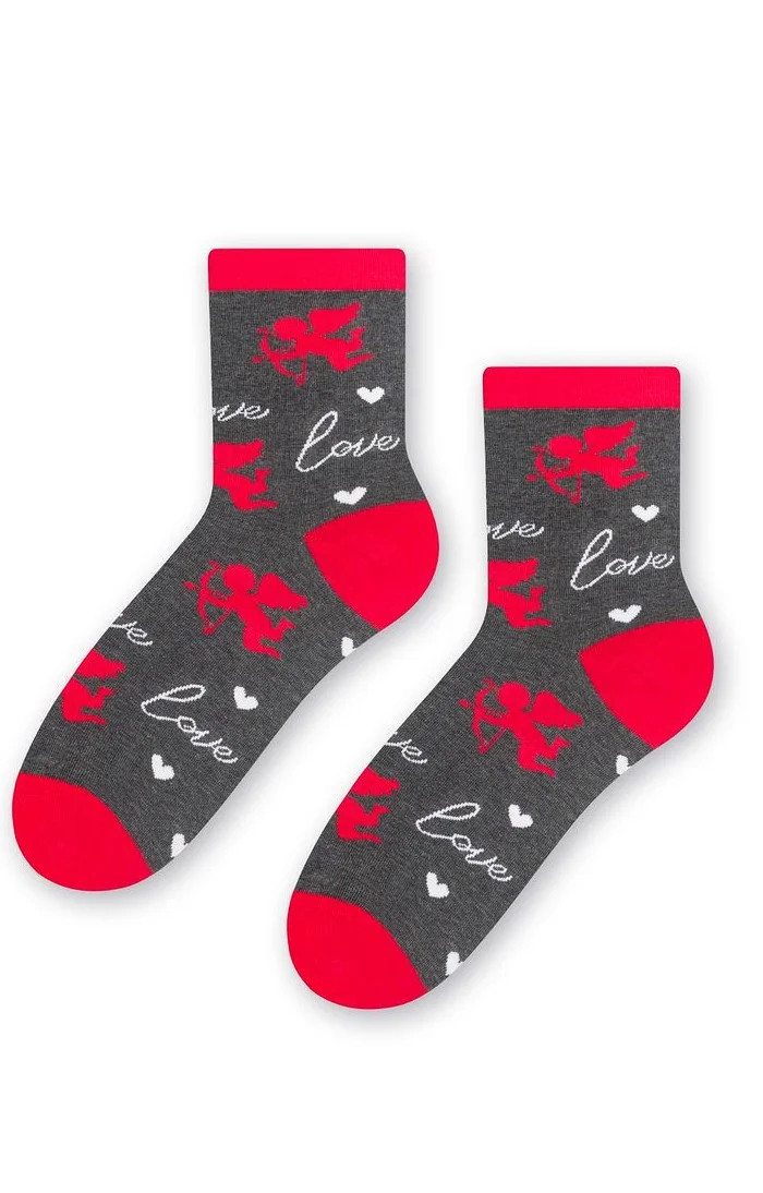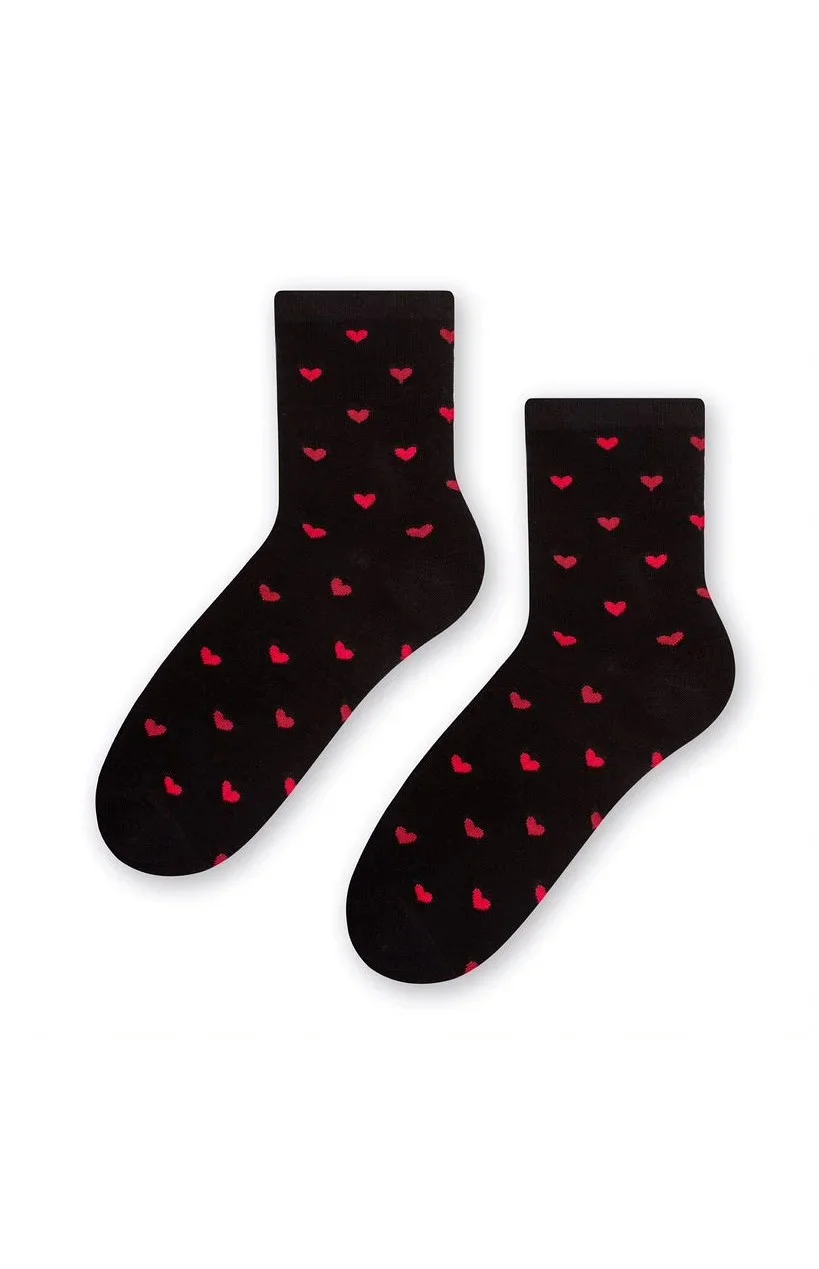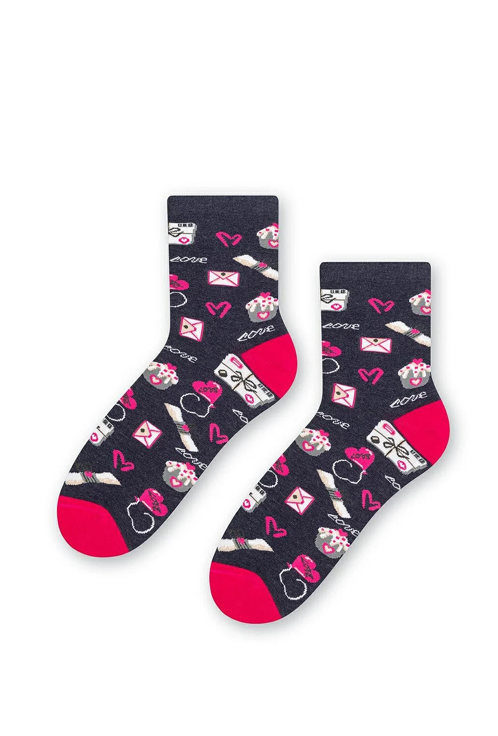Ponožky jsou ozdobené valentýnskými motivy. Ploché švy a lem, který netlačí, jsou zárukou pohodlí a komfortu při nošení.