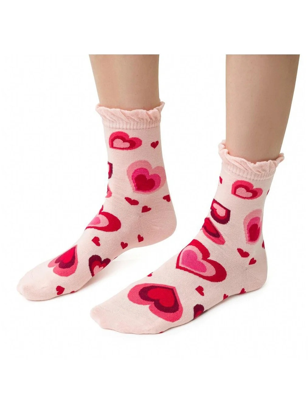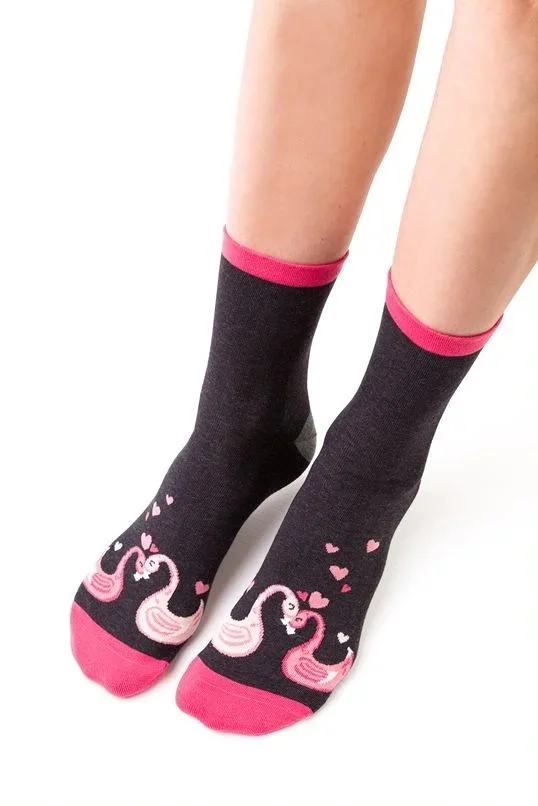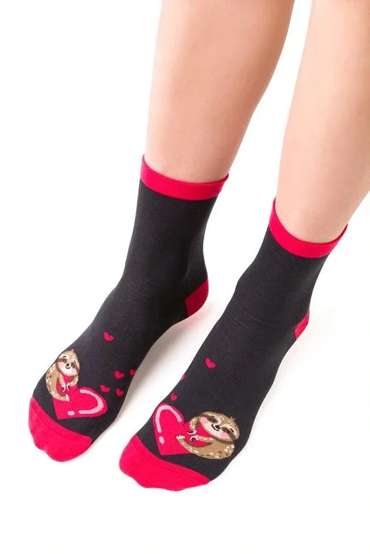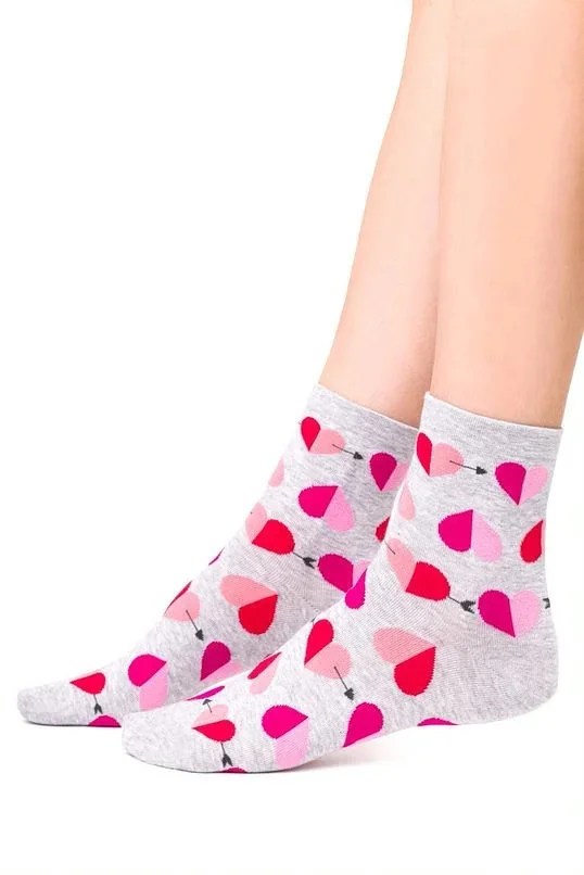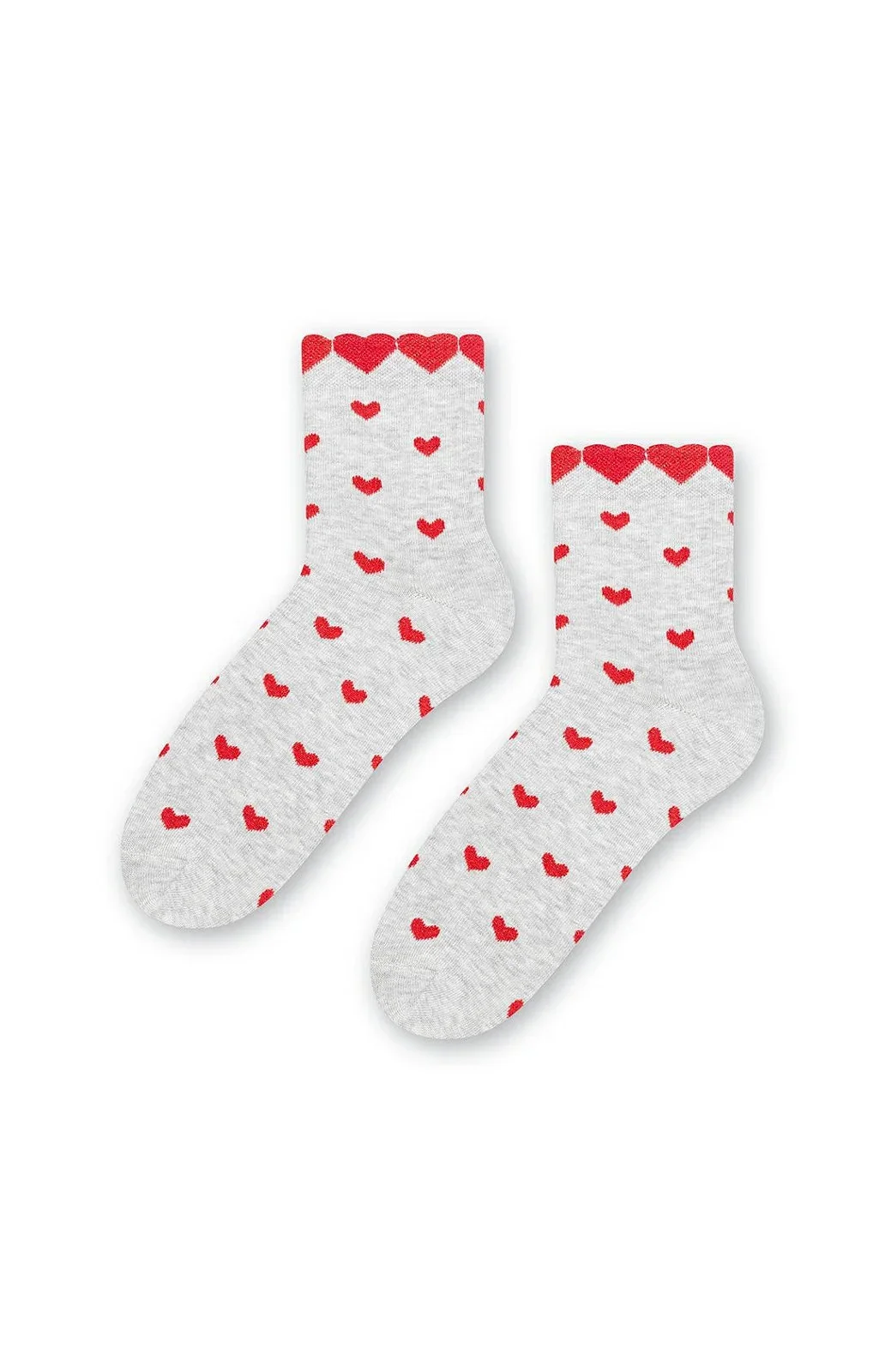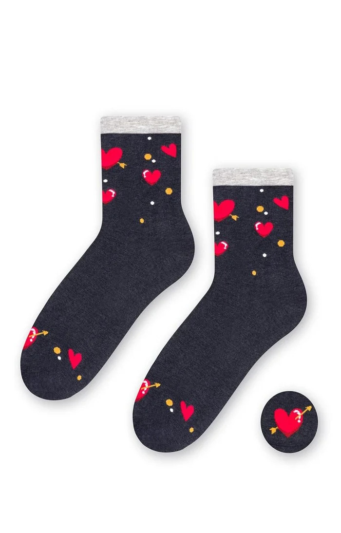 Ponožky jsou ozdobené valentýnskými motivy. Ploché švy a lem, který netlačí, jsou zárukou pohodlí a komfortu při nošení.