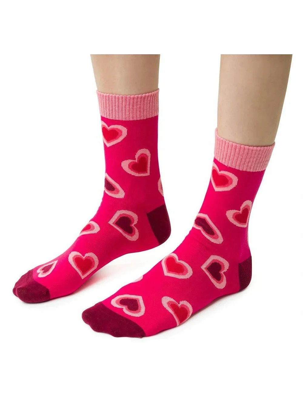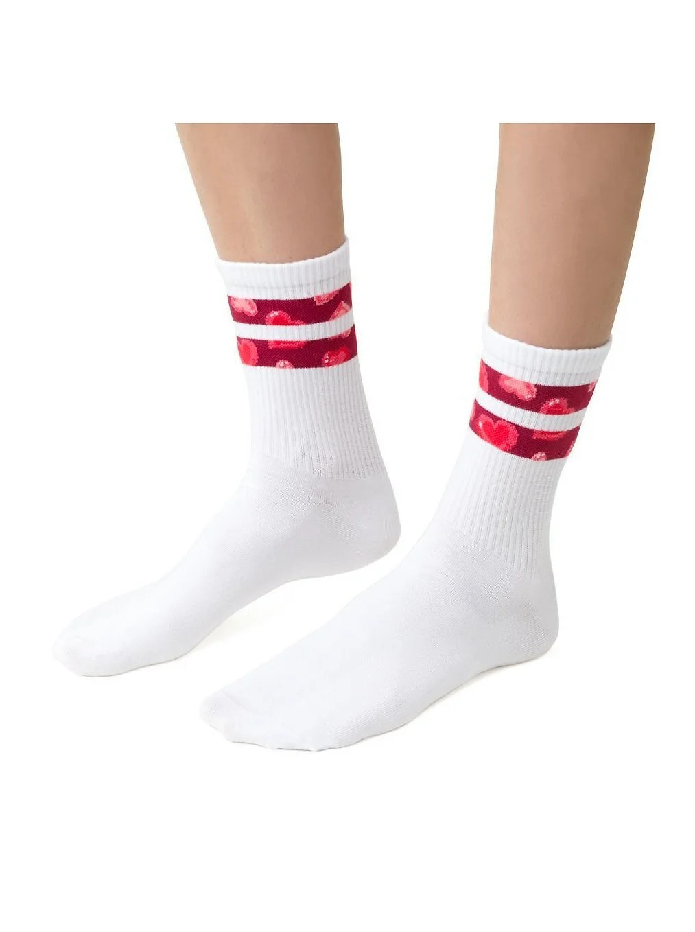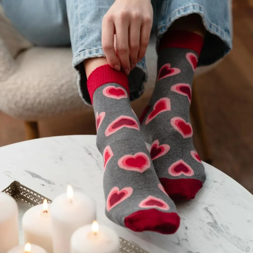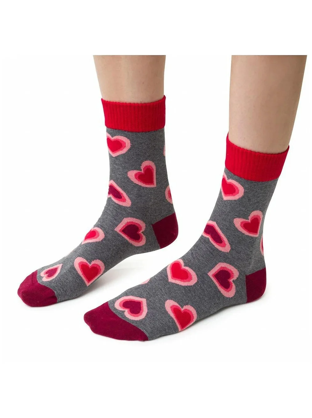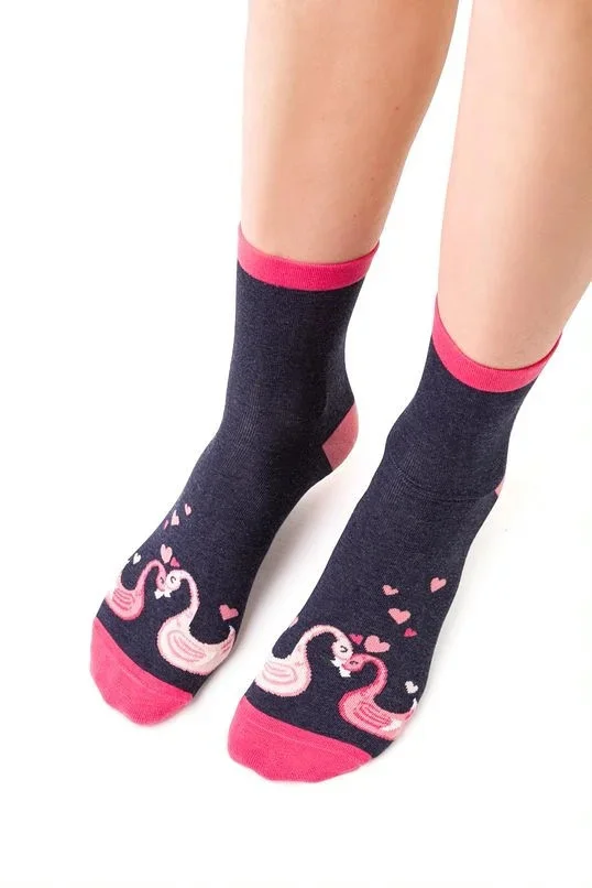 Ponožky jsou ozdobené valentýnskými motivy. Ploché švy a lem, který netlačí, jsou zárukou pohodlí a komfortu při nošení.