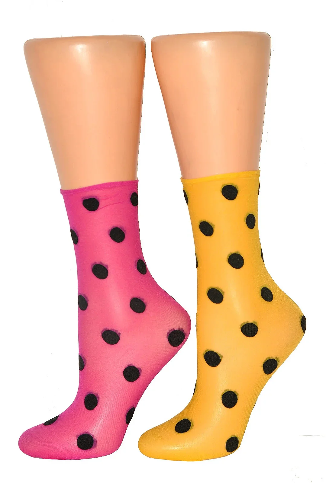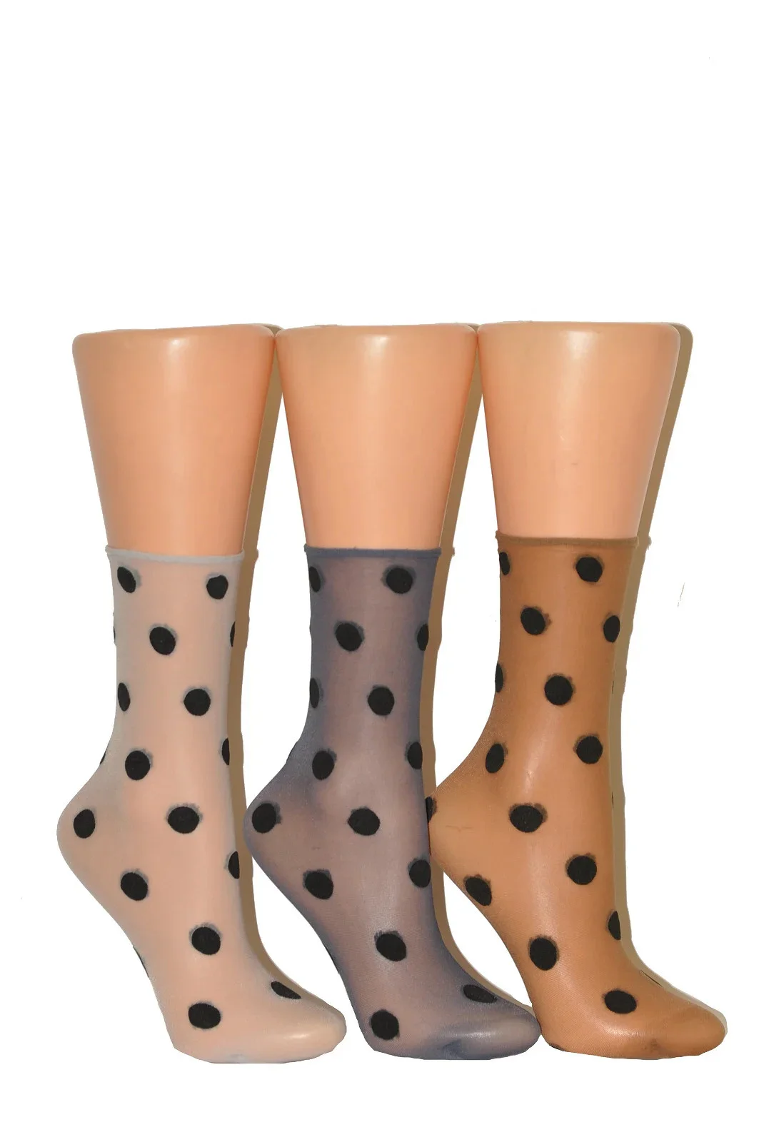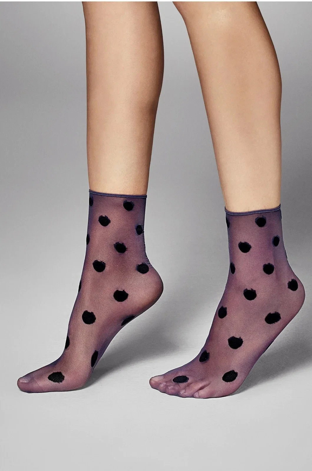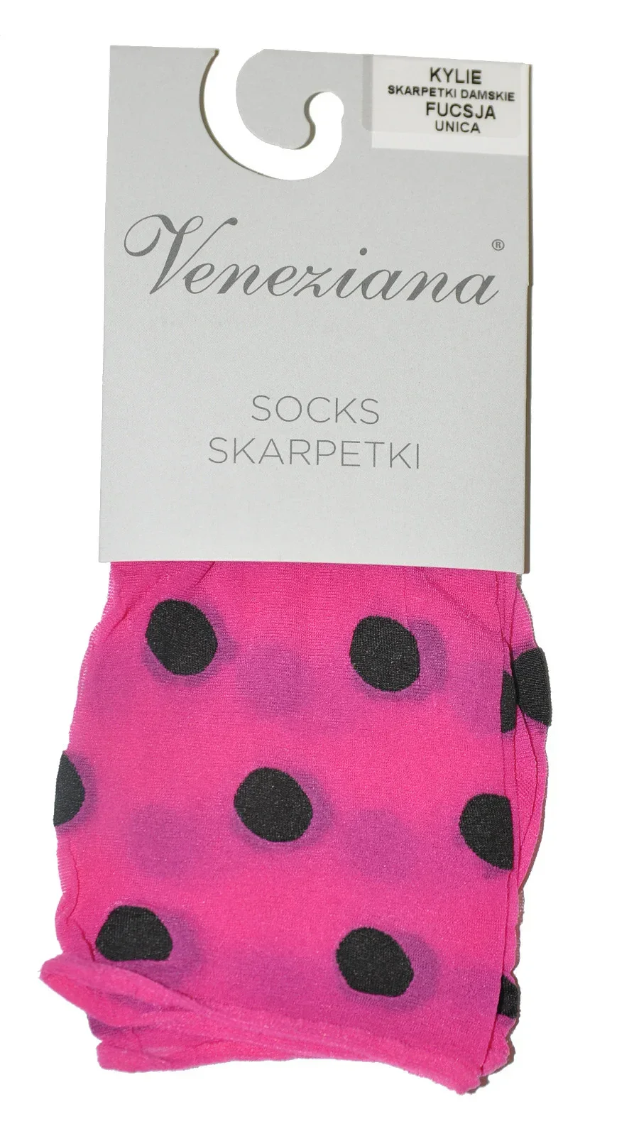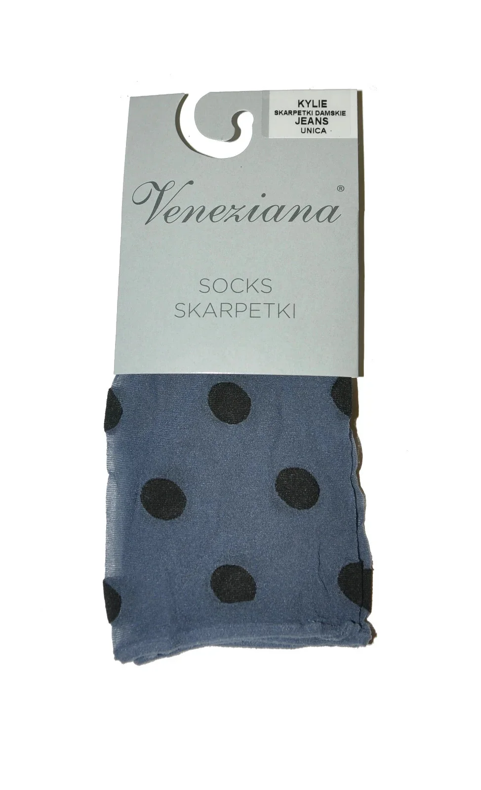 Model má jemný lem, který při nošení netlačí. Ponožky jsou ozdobené vzorem velkých puntíků. Univerzální velikost.