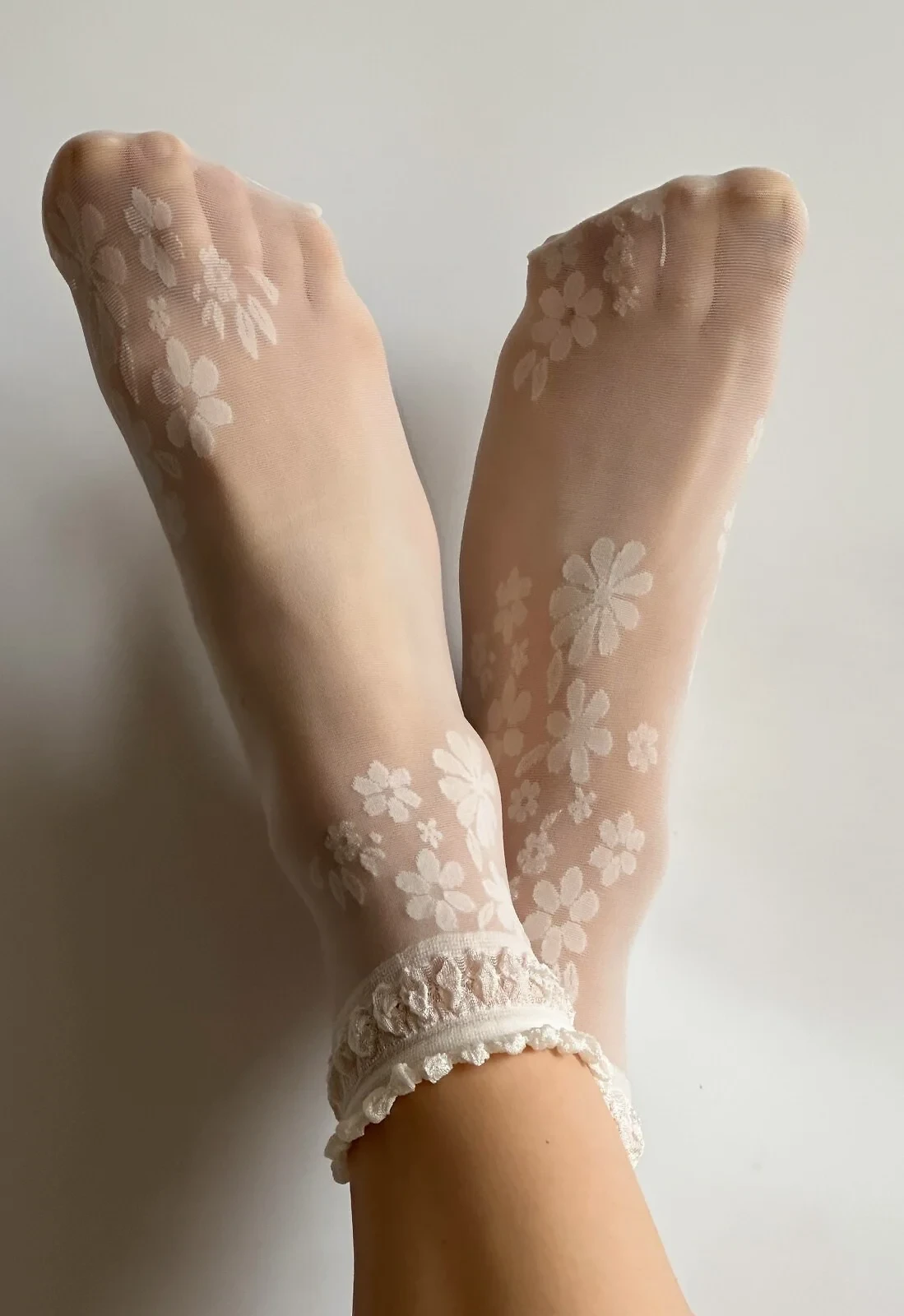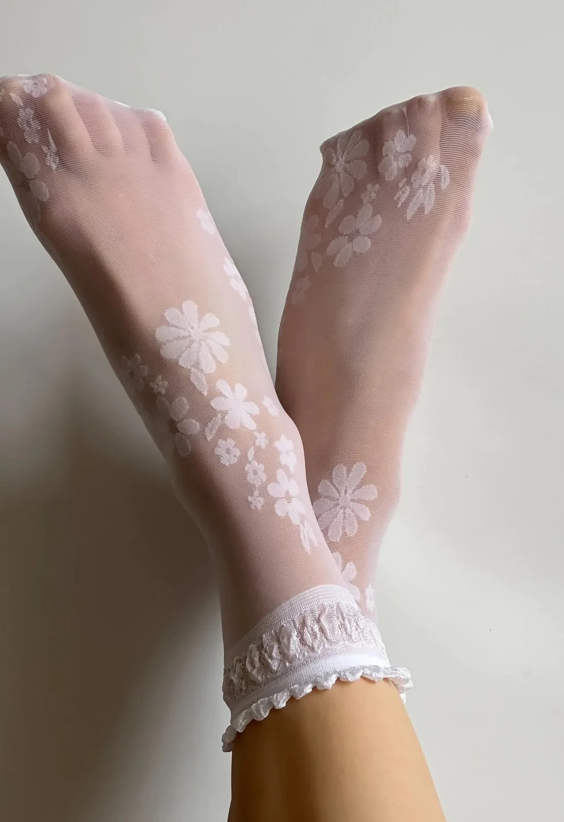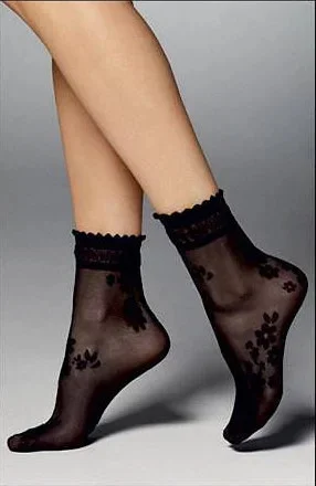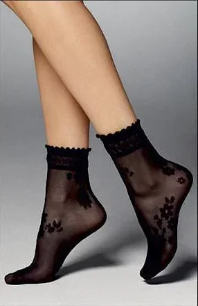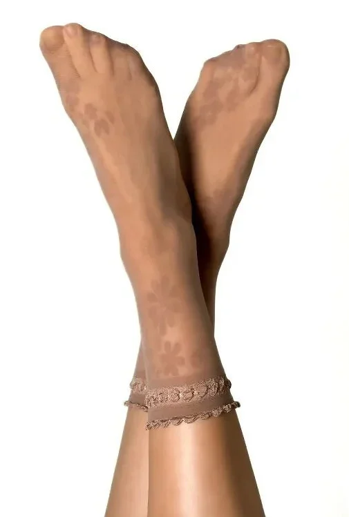 Tenké vzorované dámské ponožky s ozdobným žebrováním