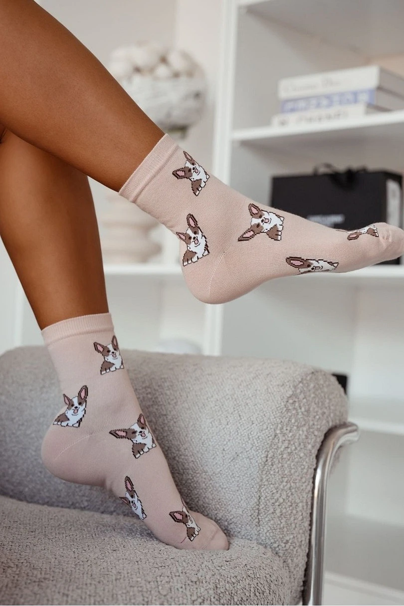 Model Corgi 0200.231 je kombinací funkčnosti a ženského stylu. Vzorované dámské ponožky jsou skvělou nabídkou pro lidi, kteří chtějí svému stylingu dodat trochu ležérnosti, barevnosti a originality. Je to také dobrý nápad na malý praktický dárek.