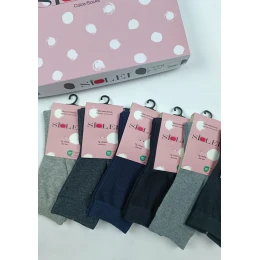 Sada 6 ponožek v dárkovém balení. Ponožky mají lem ukončený volně, takže nijak ponožky netáhnou okolo nohy. Ponožky jsou jednobarevné. Velikost ponožek je UNI (36-40).