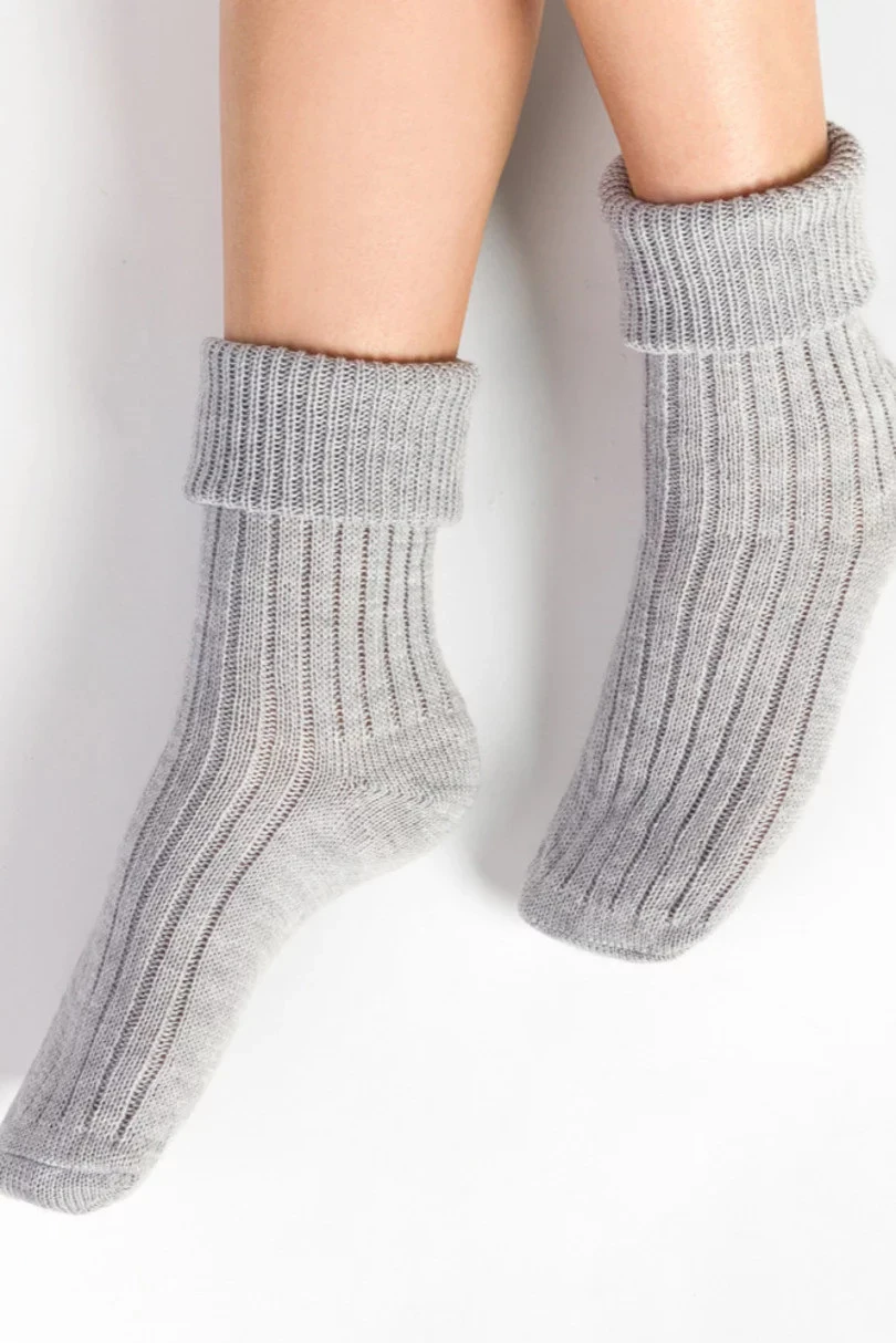 Teplé ponožky na spaní z akrylu (70%) a vlny (30%). Pohodlné, jemně přiléhají k tělu, s netlačícím lemem.