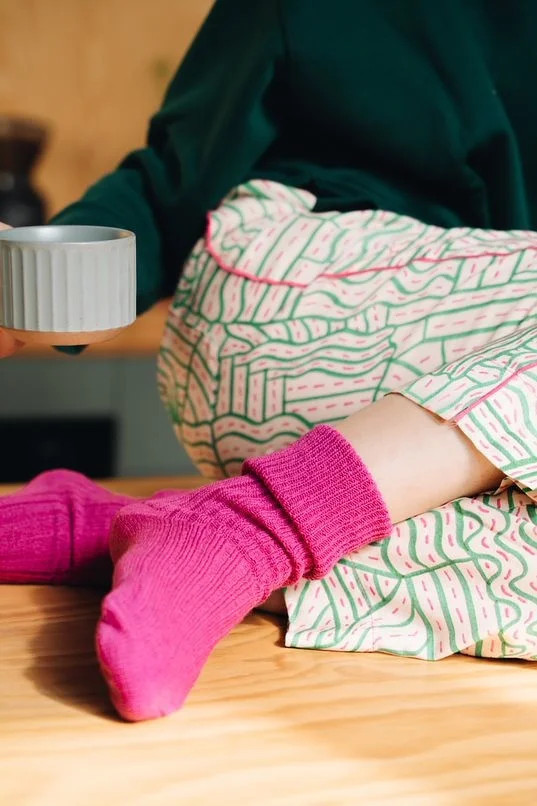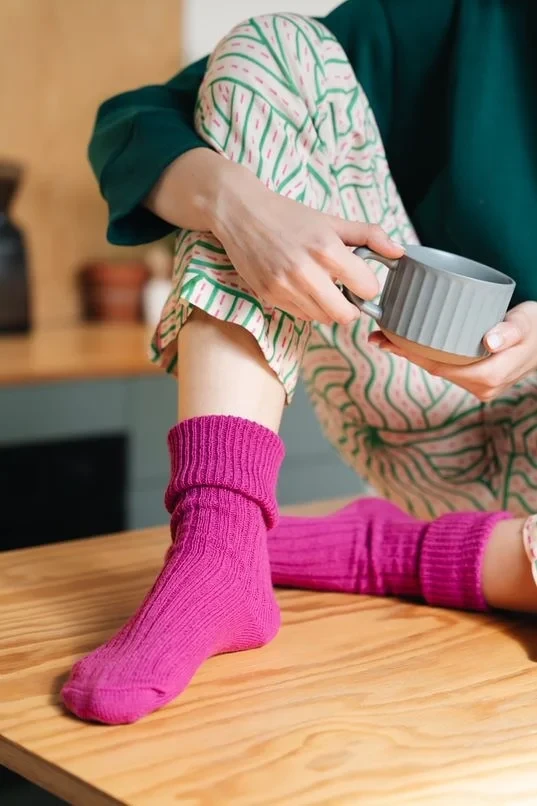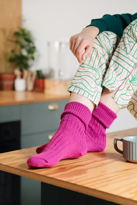 Ideální pro nachlazení i chladné zimní večery. Ponožky jsou vyrobené z akrylu (70 %) a vlny (30 %).