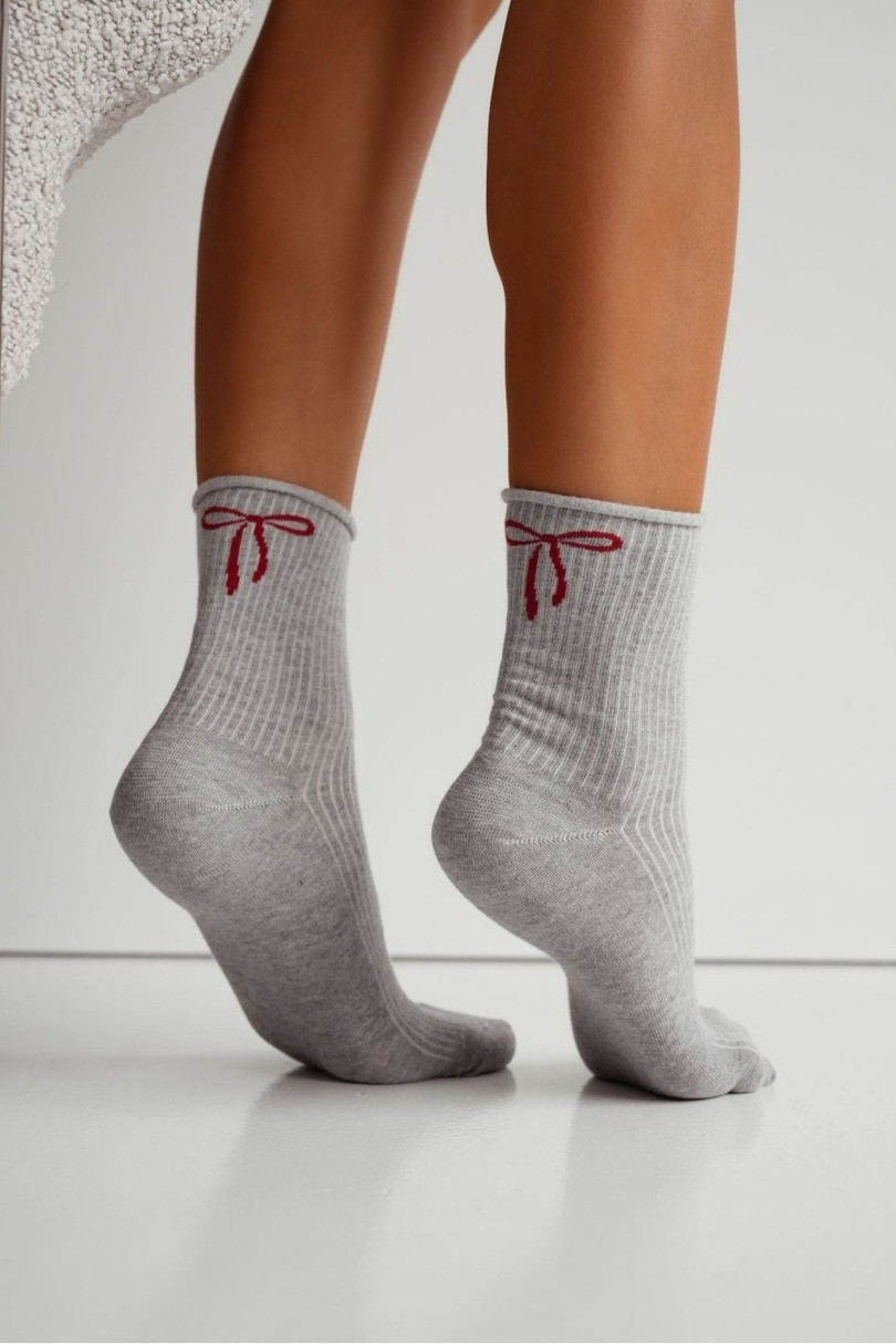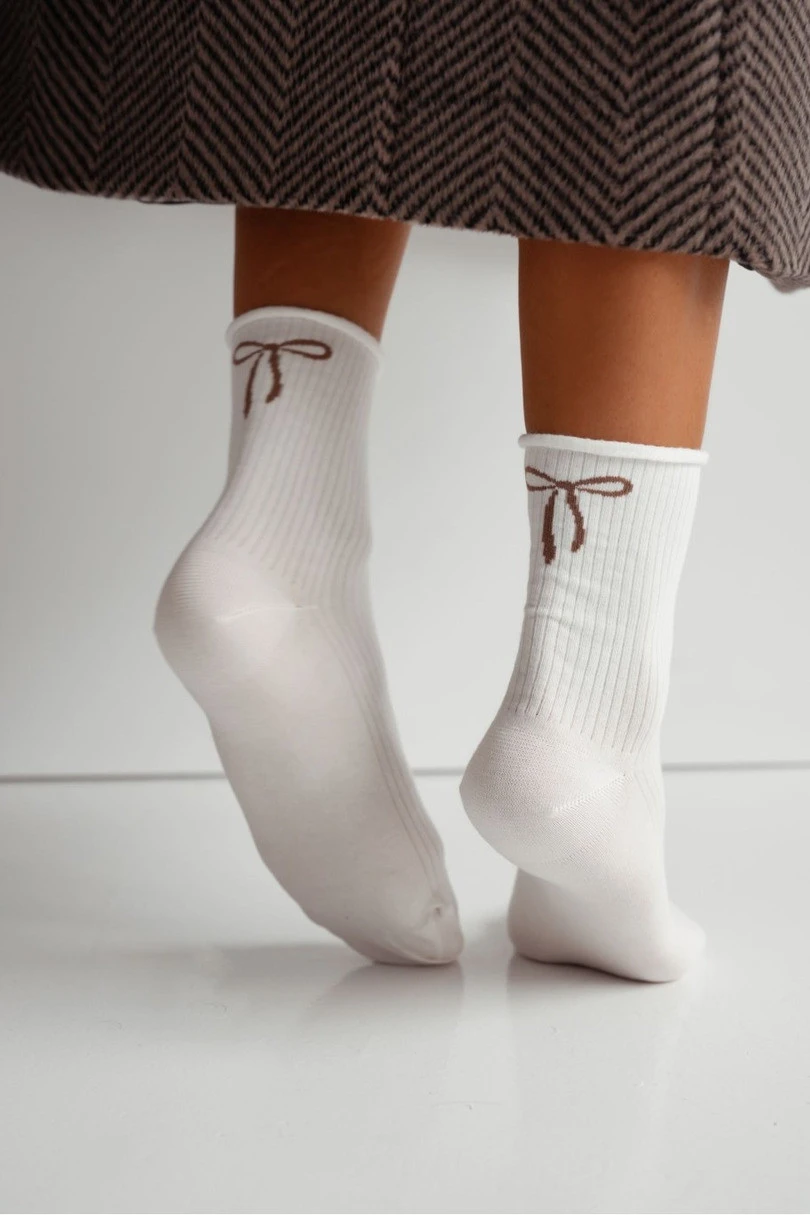 Subtelny prążkowany wzór i ozdobna kokardka dodają im kobiecego uroku, dzięki czemu świetnie sprawdzą się zarówno do codziennych stylizacji, jak i bardziej eleganckich zestawów. Wysoka zawartość bawełny gwarantuje miękkość i przewiewność, a dodatek elastycznych włókien zapewnia idealne dopasowanie do stopy.