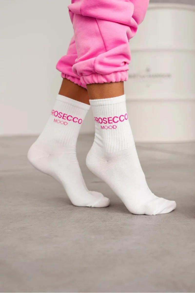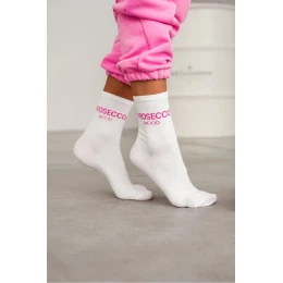 Bílé dámské ponožky PROSECCO MOOD jsou měkké, pohodlné a ideální pro každodenní nošení. Kvalitní materiál zajišťuje příjemný pocit po celý den a dobrou prodyšnost. Moderní nápis a design dodávají ponožkám stylový a originální vzhled.