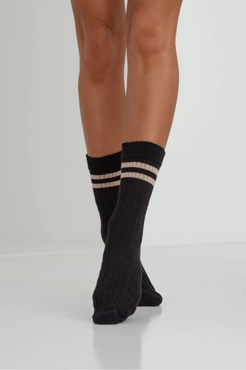Přidání recenze k Dámské ponožky s copem a pruhy Černé