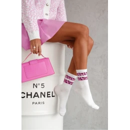 Stylové dámské ponožky v bílo-růžové kombinaci doplněné dvěma módními leopardími pruhy. Jsou měkké, pohodlné a ideální pro každodenní nošení. Jemný a prodyšný materiál zaručí celodenní komfort.