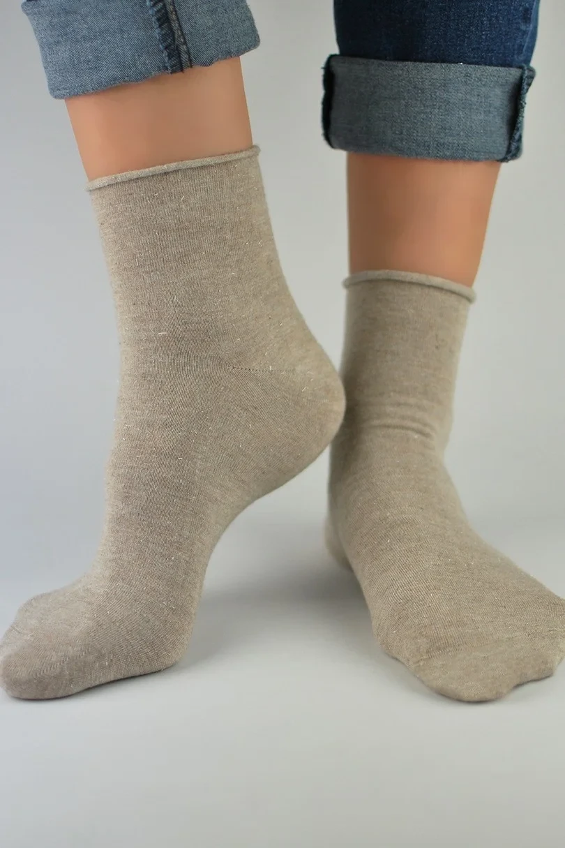 Dámské ponožky bez zad s třpytivou lurexovou nití. Složení materiálu: 79 % bavlna, 16 % polyamid, 4 % elastan.