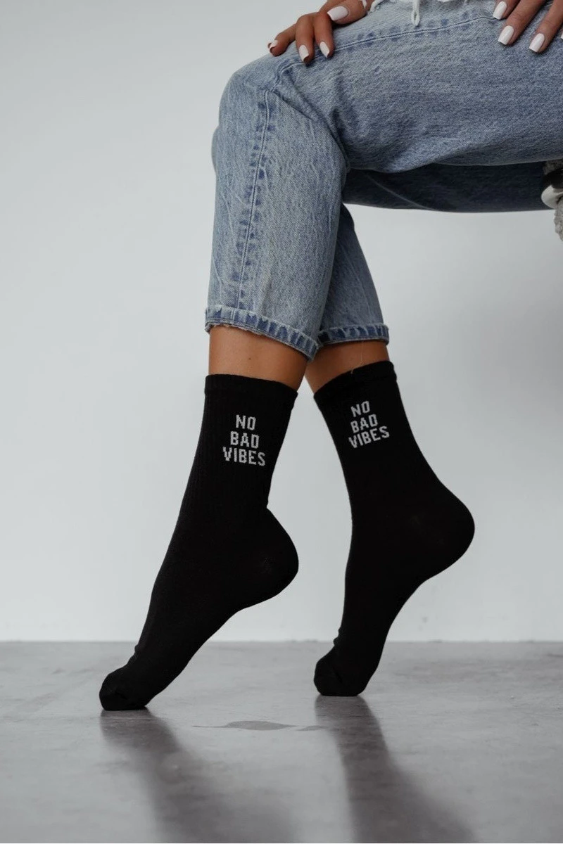 Dámské ponožky s nápisem „NO BAD VIBES“ – černé