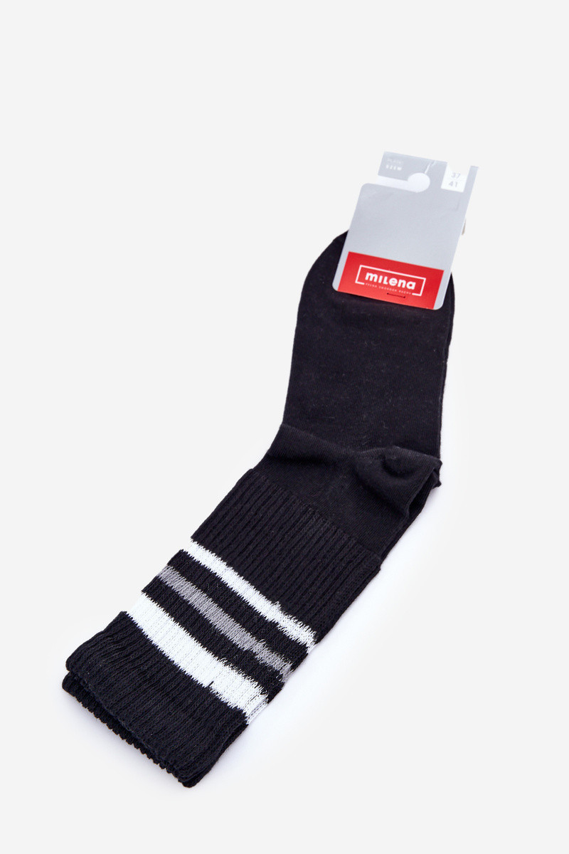 Dámské ponožky s jemným žebrovaným lemem, který netlačí na nohu. Lem může být nařasen, což vytváří efektní akcent ve stylizaci. Měkké na dotek, zajišťují vysoký komfort nošení.