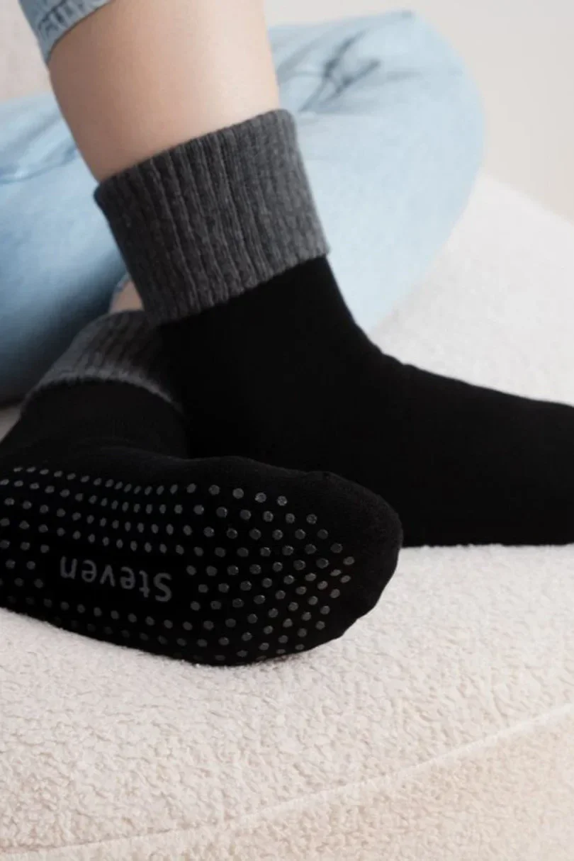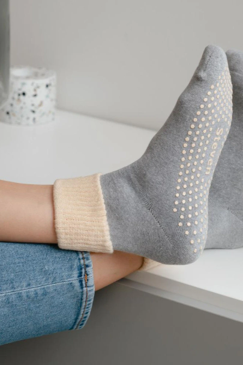 Protiskluzové dámské froté ponožky s vyhrnutým lemem.