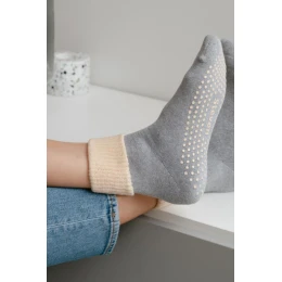 Protiskluzové dámské froté ponožky s vyhrnutým lemem.