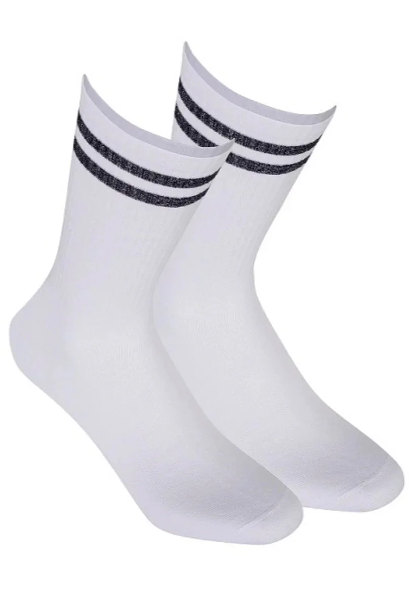 Bílé dámské ponožky se dvěma proužky v lesklých barvách - to je módní nabídka od Wola.