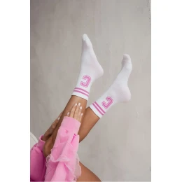 Dámské Ponožky S Pruhy A Písmenem C Bílo-Růžové