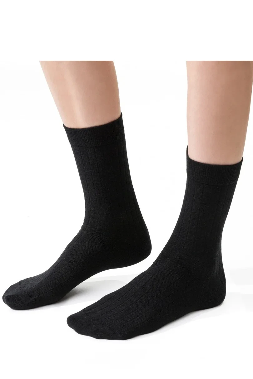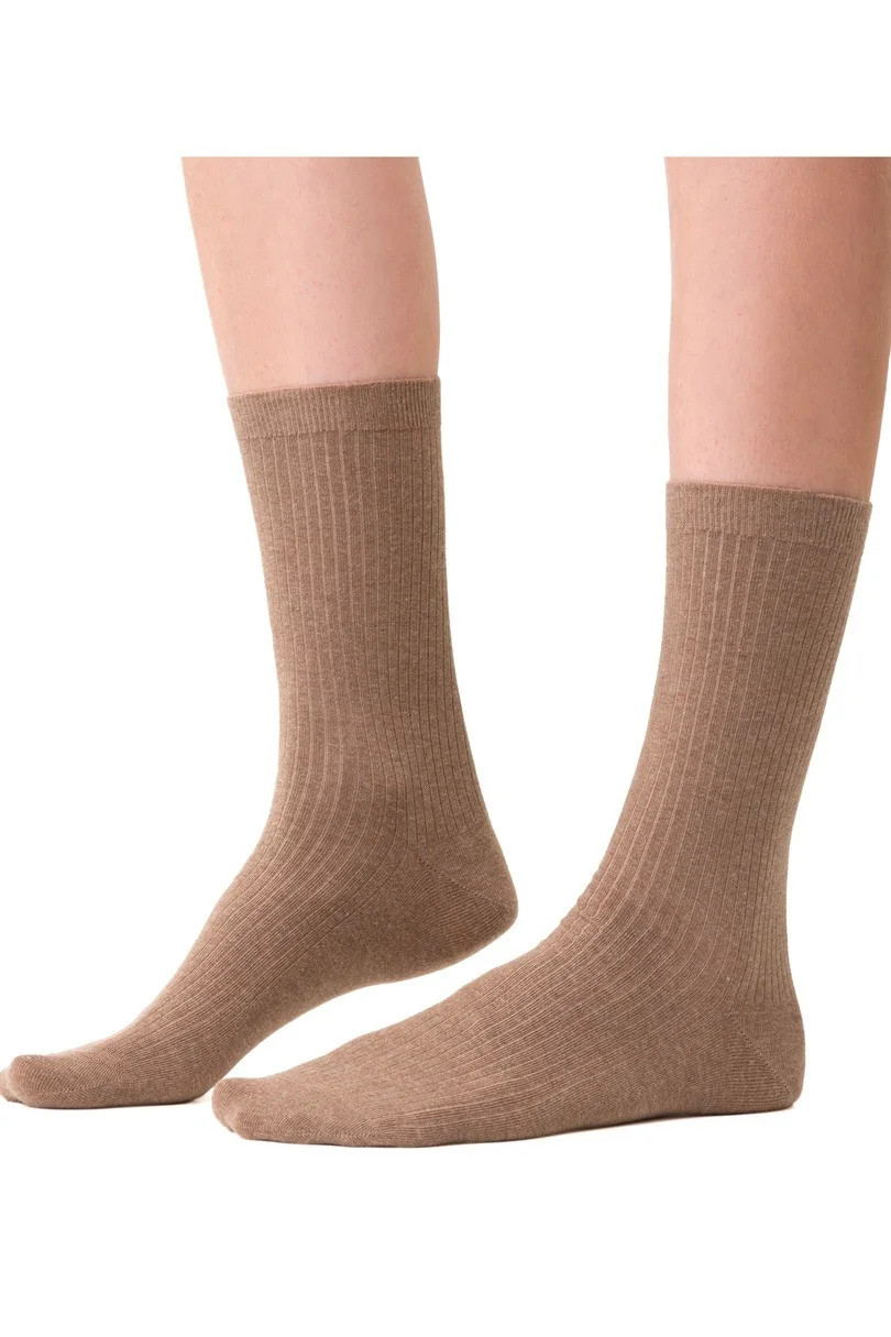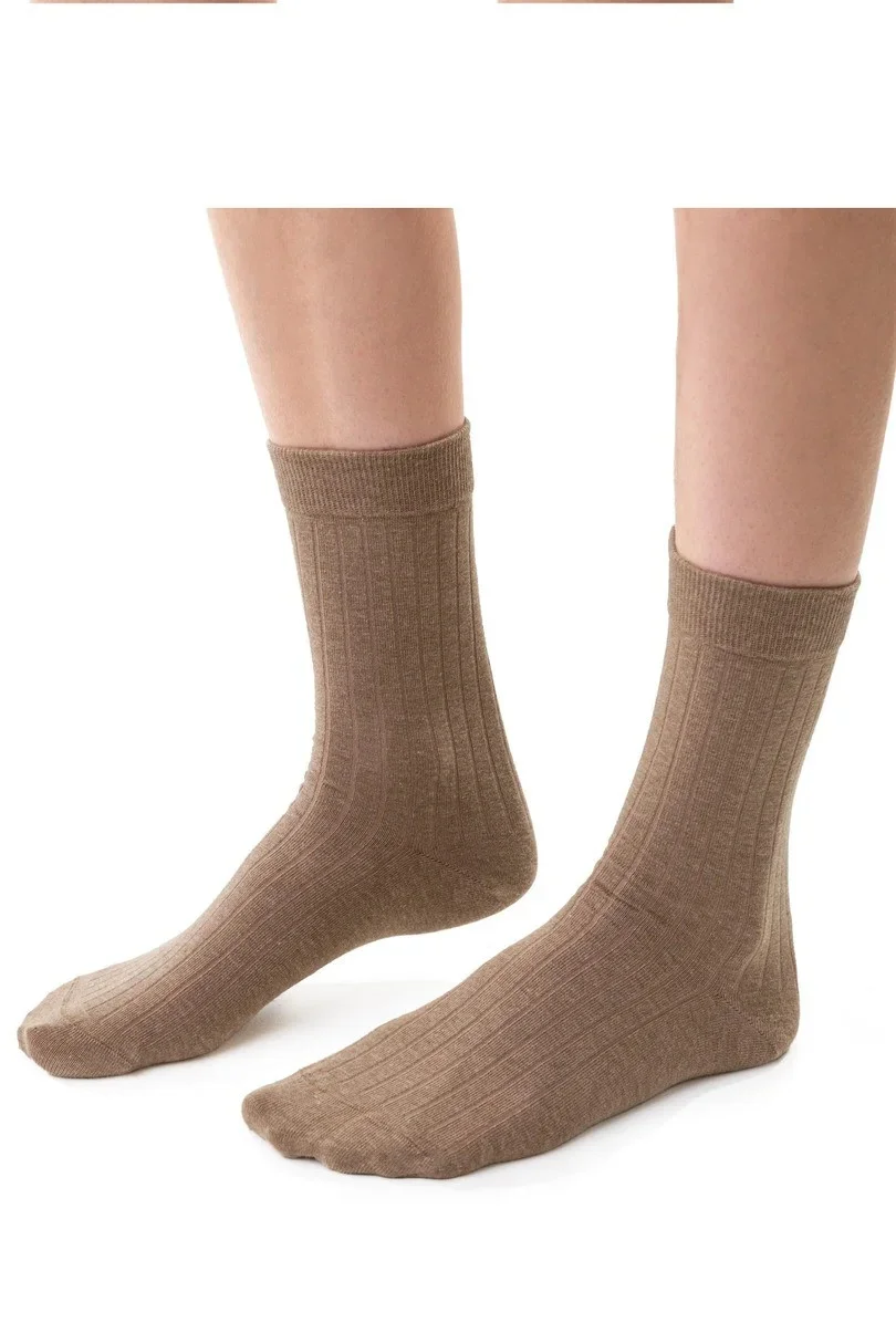 Dámské ponožky s velbloudí vlnou 053 jsou ideálním řešením pro ženy, které oceňují přírodní materiály a výjimečné pohodlí. Jsou vyrobeny z organické bavlny (55 %) a vzácné velbloudí vlny (14 %) (bio velbloud), poskytují teplo, měkkost a prodyšnost. Díky netlačícímu stahu a plochým švům ponožky nezpůsobují nepohodlí ani netlačí, takže jsou ideální volbou pro chladnější dny. jejich žebrovaná struktura jim dodává eleganci a noblesu, dokonale se hodí ke každodennímu i formálnějšímu oblečení.