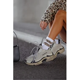 Stylové dámské ponožky v bílé barvě se dvěma výraznými skvrnitými pruhy. Měkký a prodyšný materiál zajišťuje pohodlí a komfort při celodenním nošení. Ideální do tenisek, balerín i domácí obuvi.