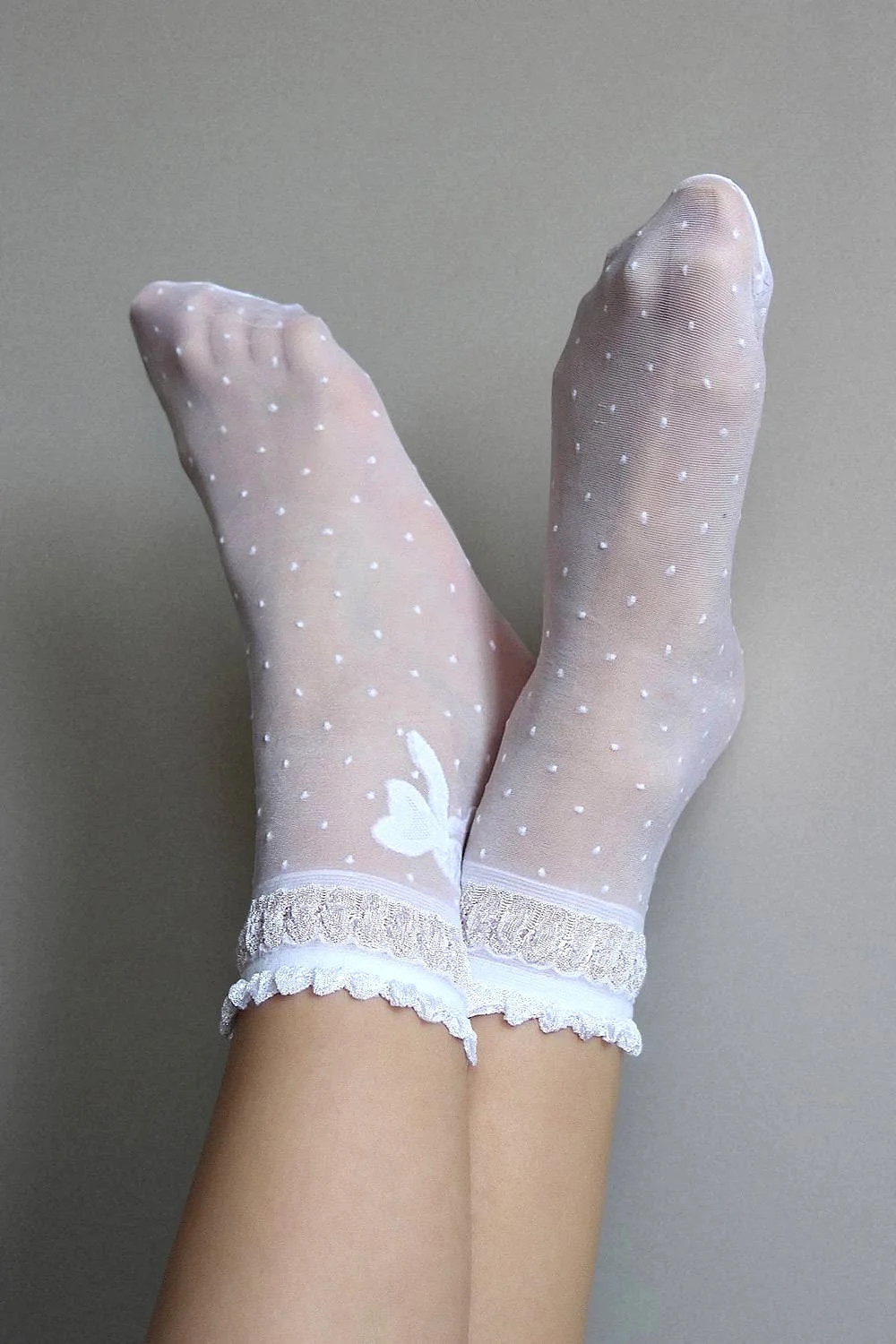 Tenké dámské vzorované ponožky s ozdobným stahovacím lemem.