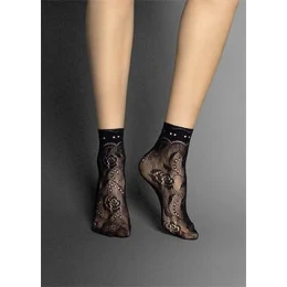 Dámské ponožky, které jsou ozdobené ažurovým vzorem.